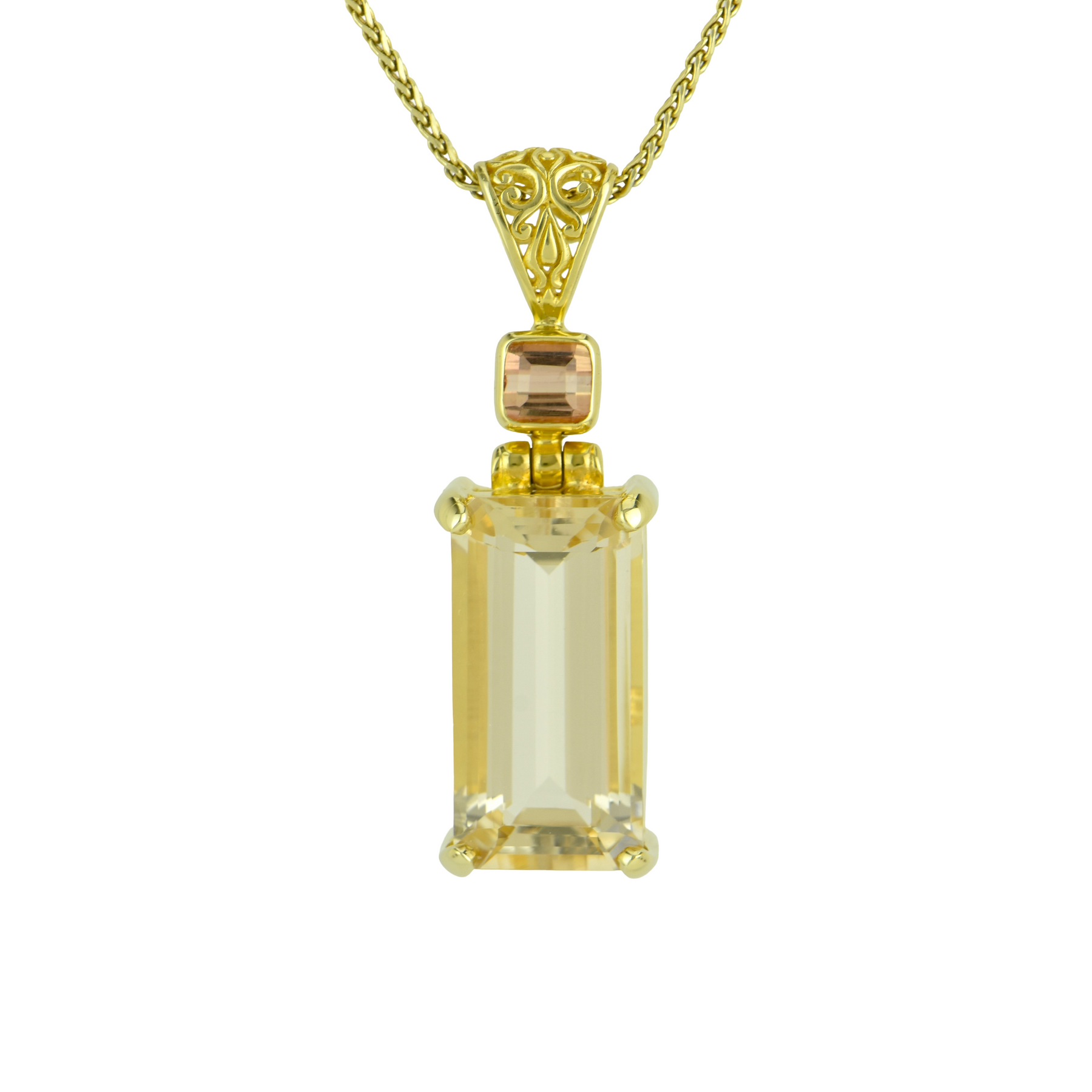 Medium rectangle natural Scapolite paired with a natural Pink Imperial Topaz set in Sterling Silver plated in Yellow Gold