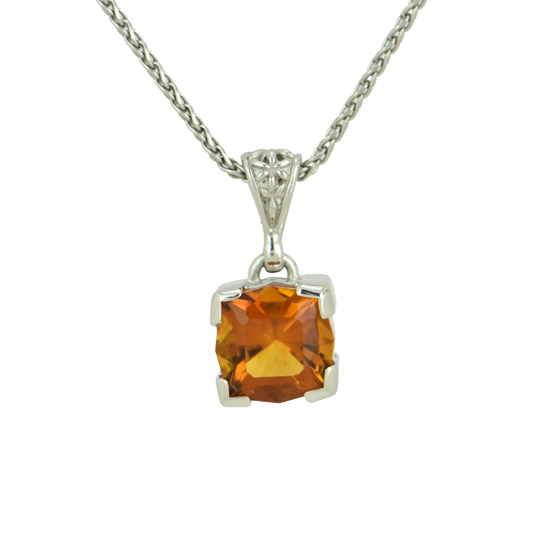 Cushion Cut Citrine Pendant, set in Sterling Silver plated in White Rhodium