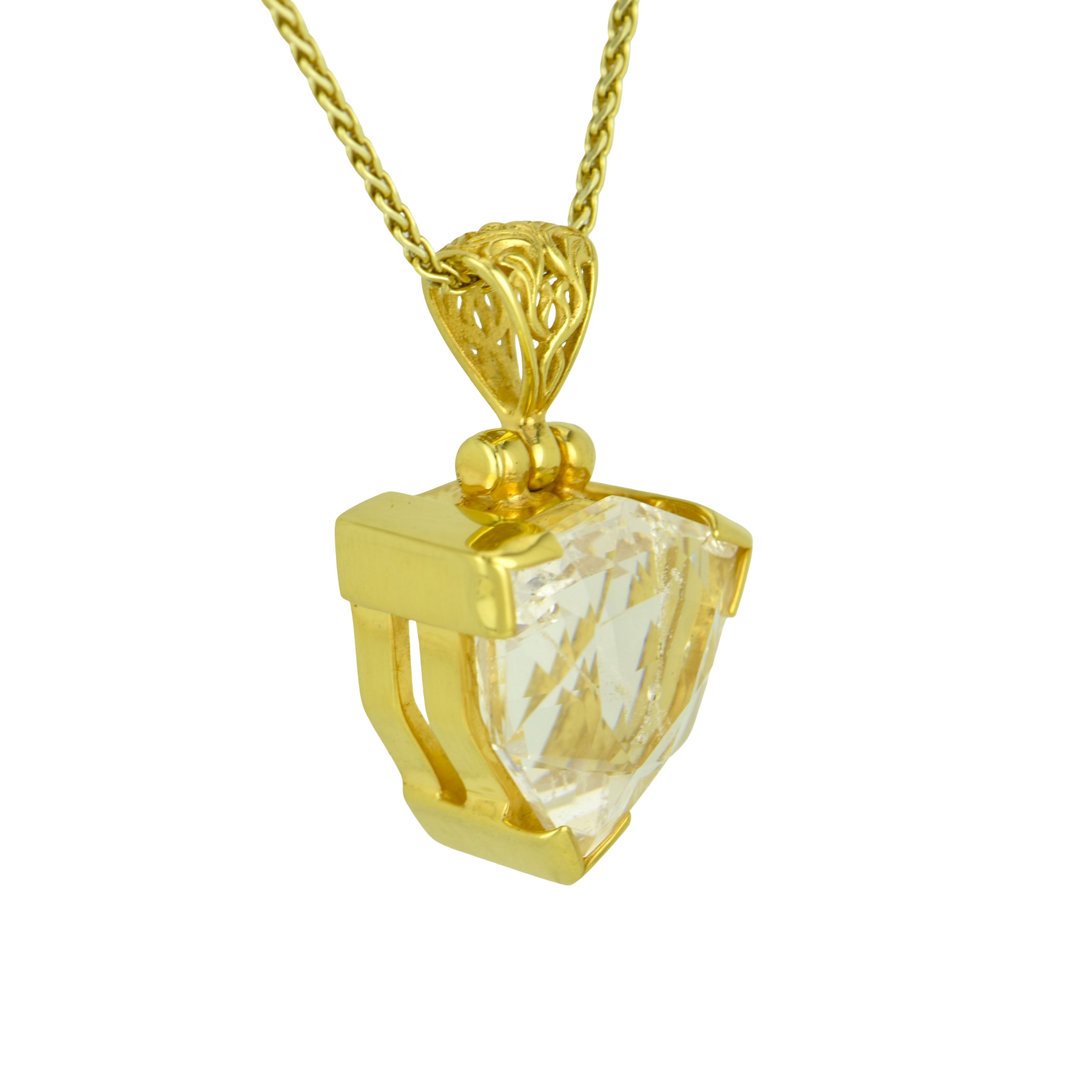 Medium 6 sided Trillion light Pink Obsidian set in Sterling Silver & plated in Yellow Gold