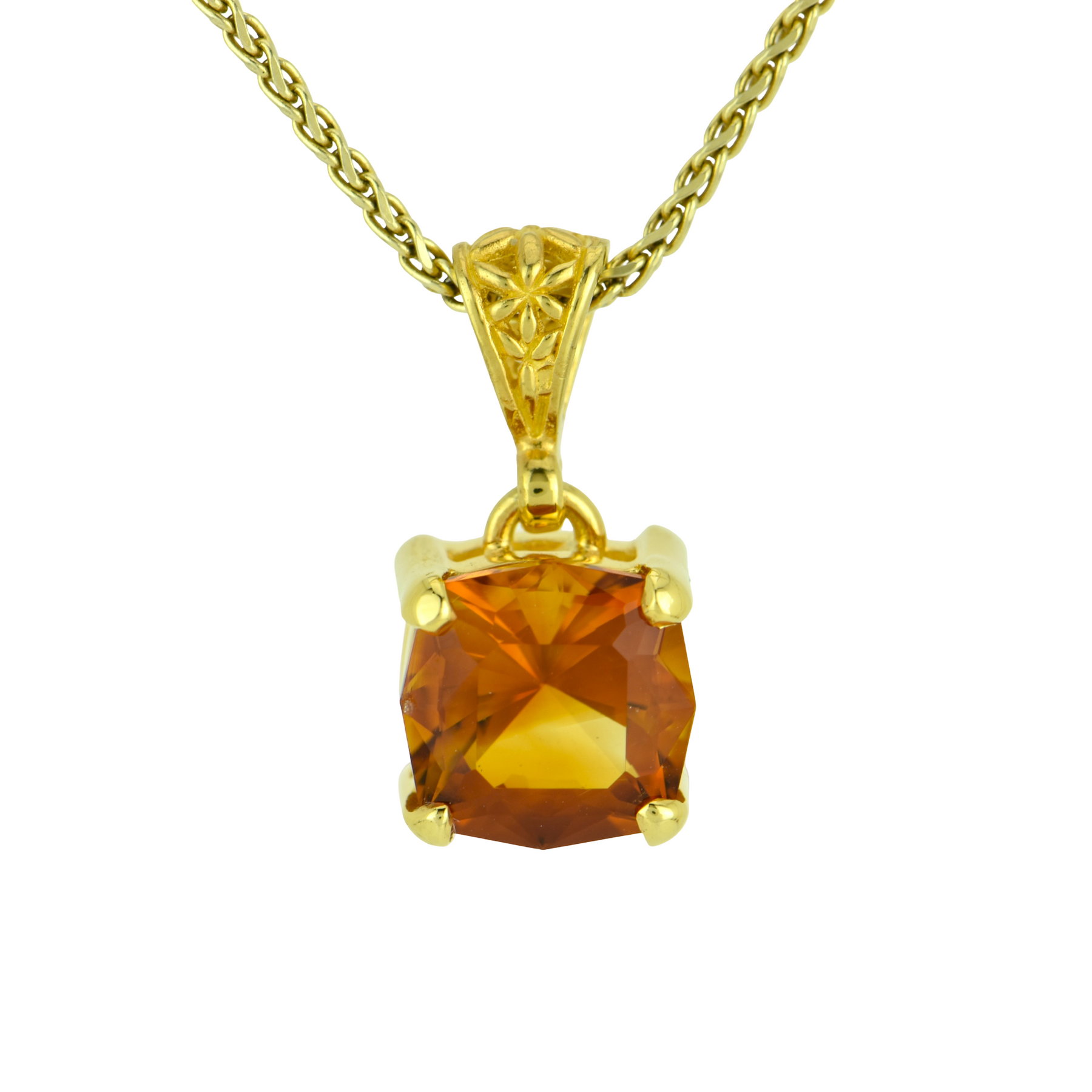 Cushion Cut Citrine Pendant, set in Sterling Silver plated in Yellow Gold