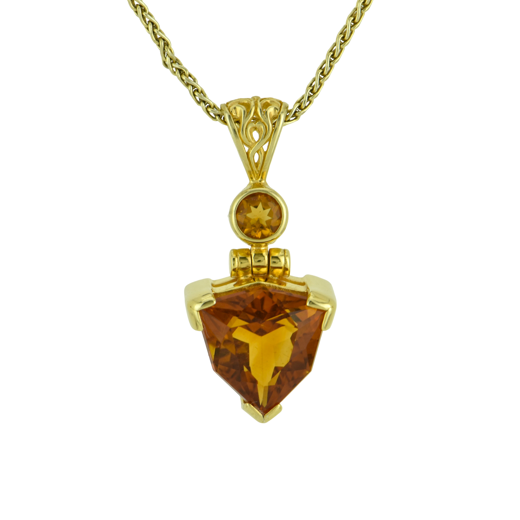 Trillion Citrine Pendant, set in Sterling Silver plated in Yellow Gold