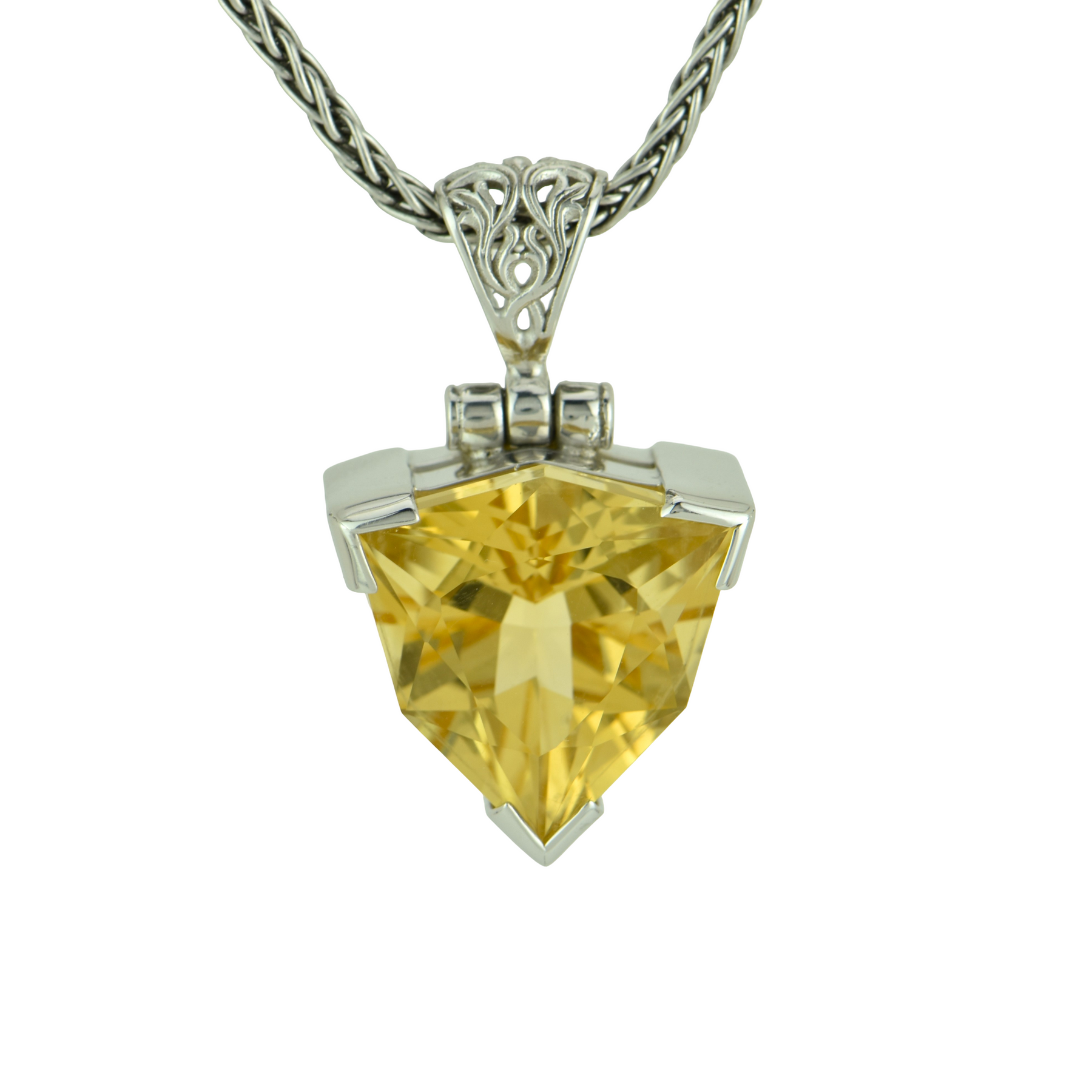 Trillion Citrine Pendant, set in Sterling Silver plated in White Rhodium