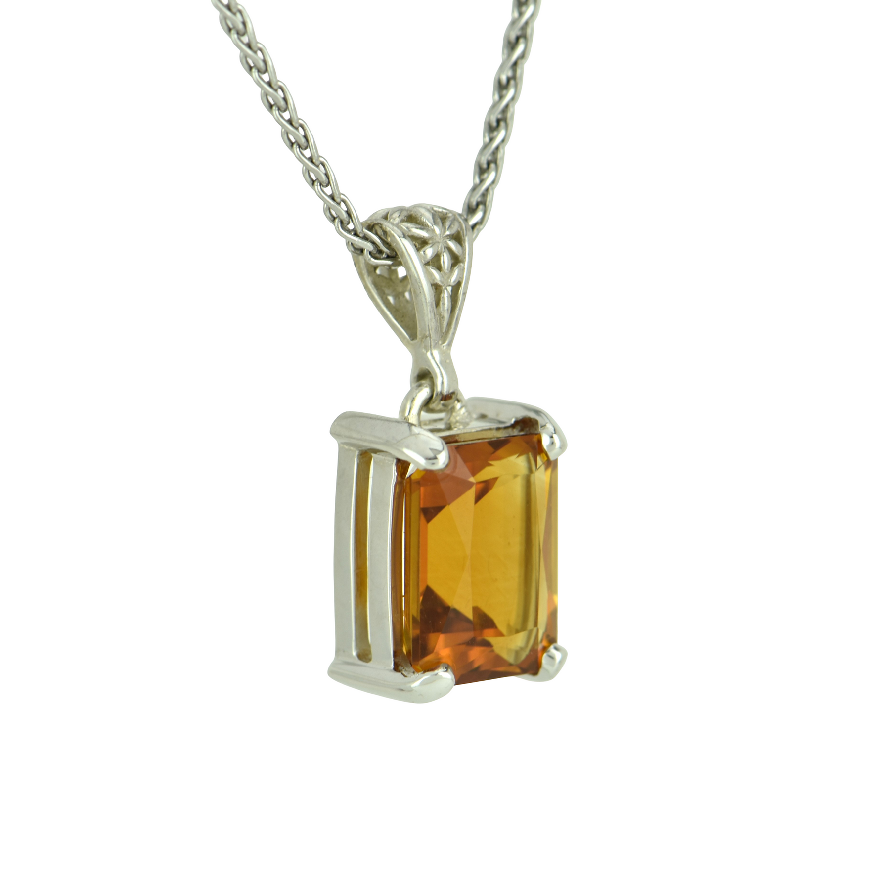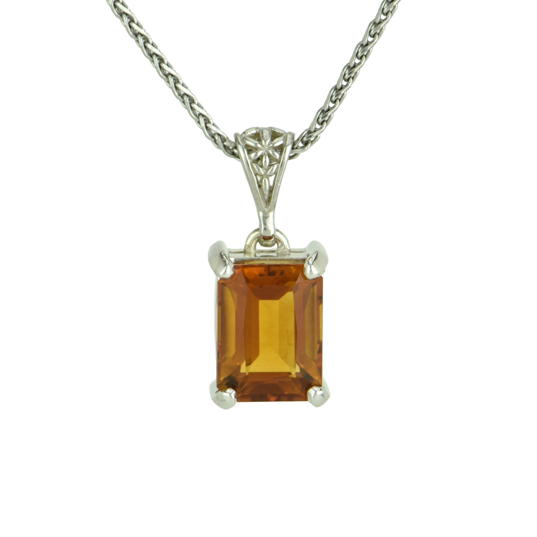 Small rectangle natural Citrine set in Sterling Silver & plated in White Rhodium