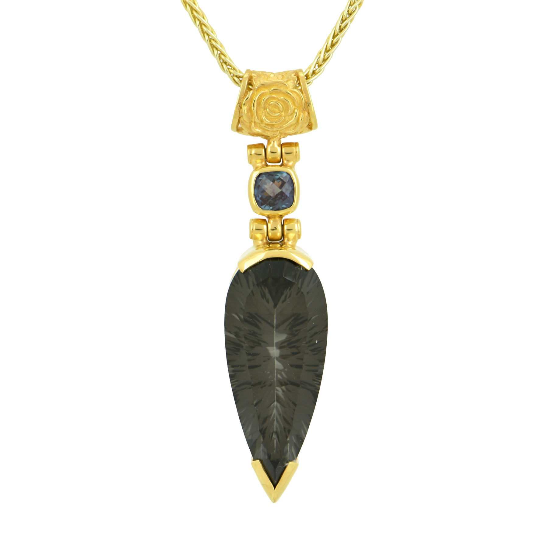 Pear Cut Midnight Mystic Quartz Pendant, set in Sterling Silver plated in Yellow Gold