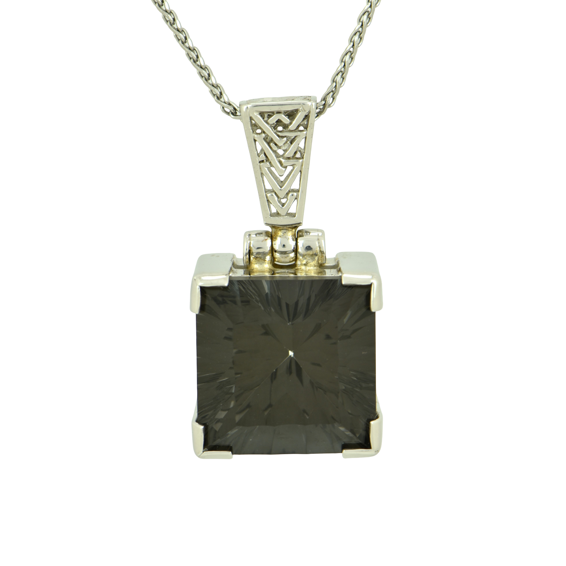 Midnight Mystic Quartz Pendant, Square Cut, set in Sterling Silver plated in White Rhodium