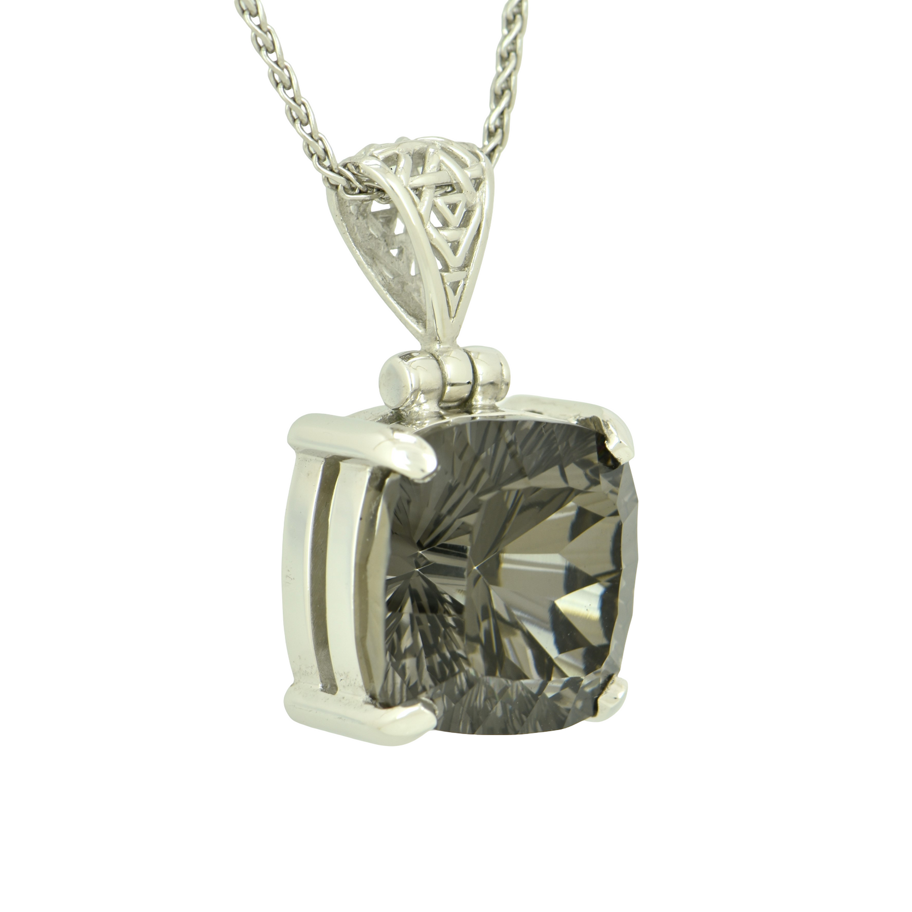 Midnight Mystic Quartz Pendant, Cushion Cut, set in Sterling Silver plated in White Rhodium