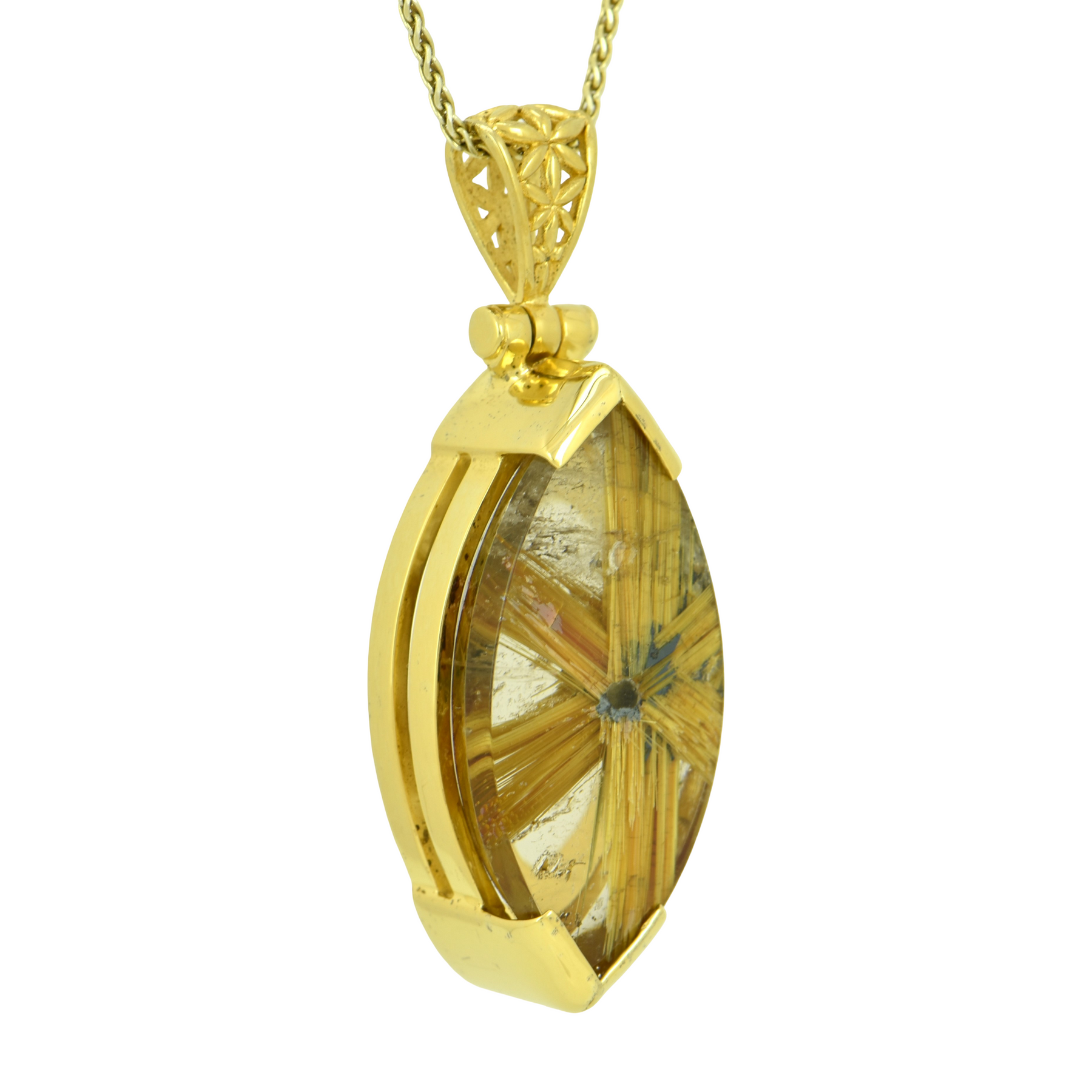 Large Marquis shape Golden Rutilated Quartz set in Sterling Silver plated in Yellow Gold