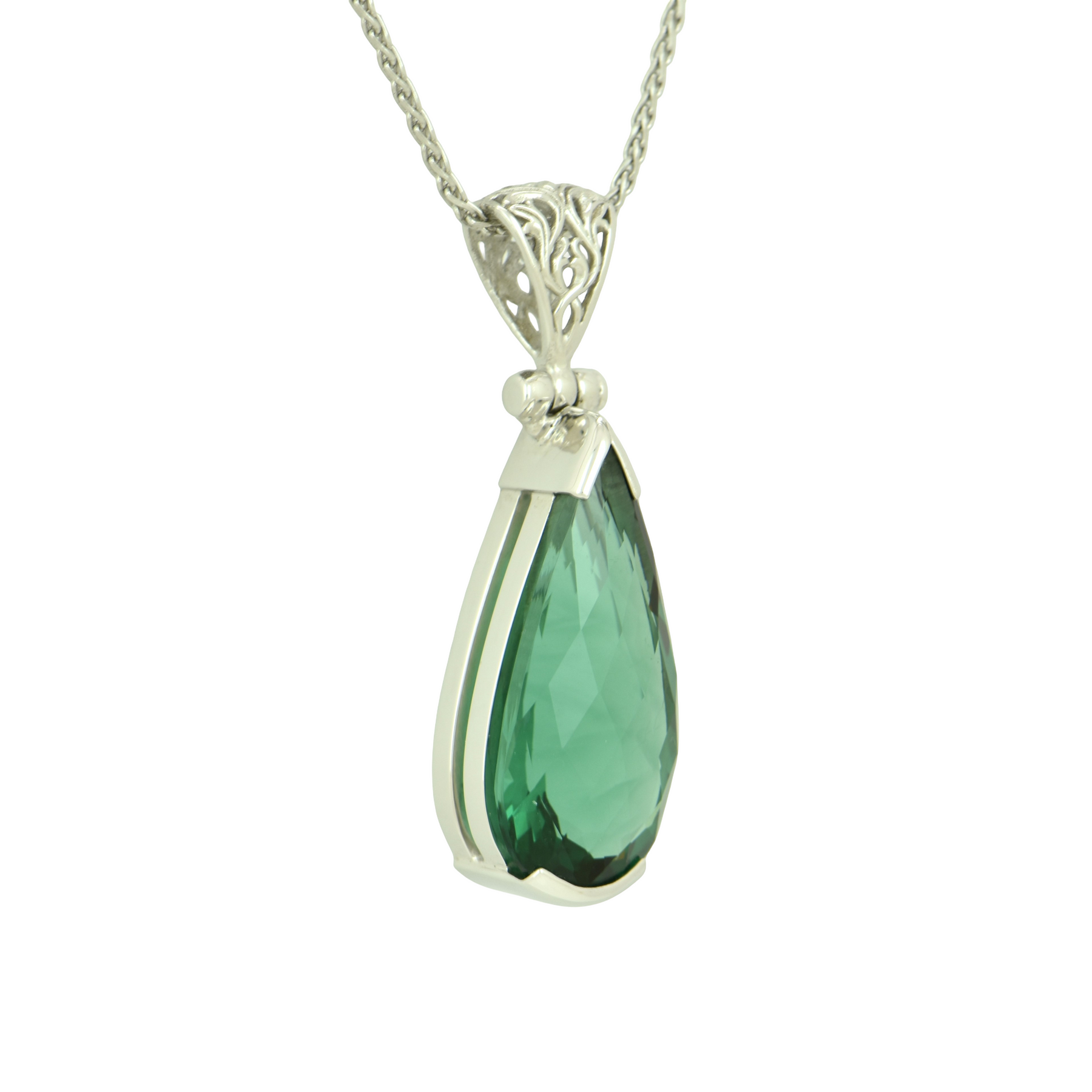 Pear Cut Green Hydro Quartz Pendant, set in Sterling Silver plated in White Rhodium