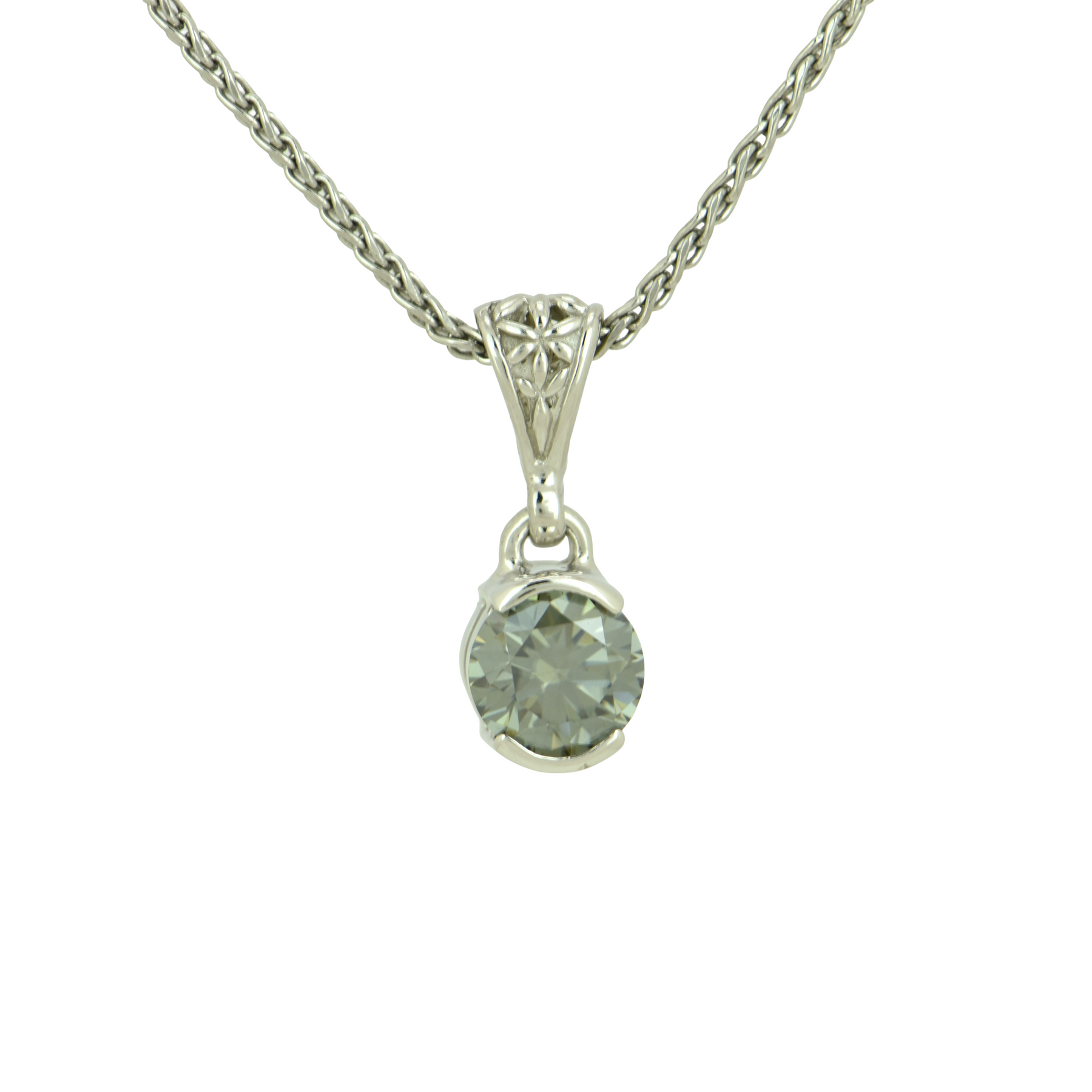 Round Black Moissanite Pendant, set in Sterling Silver plated in White Rhodium
