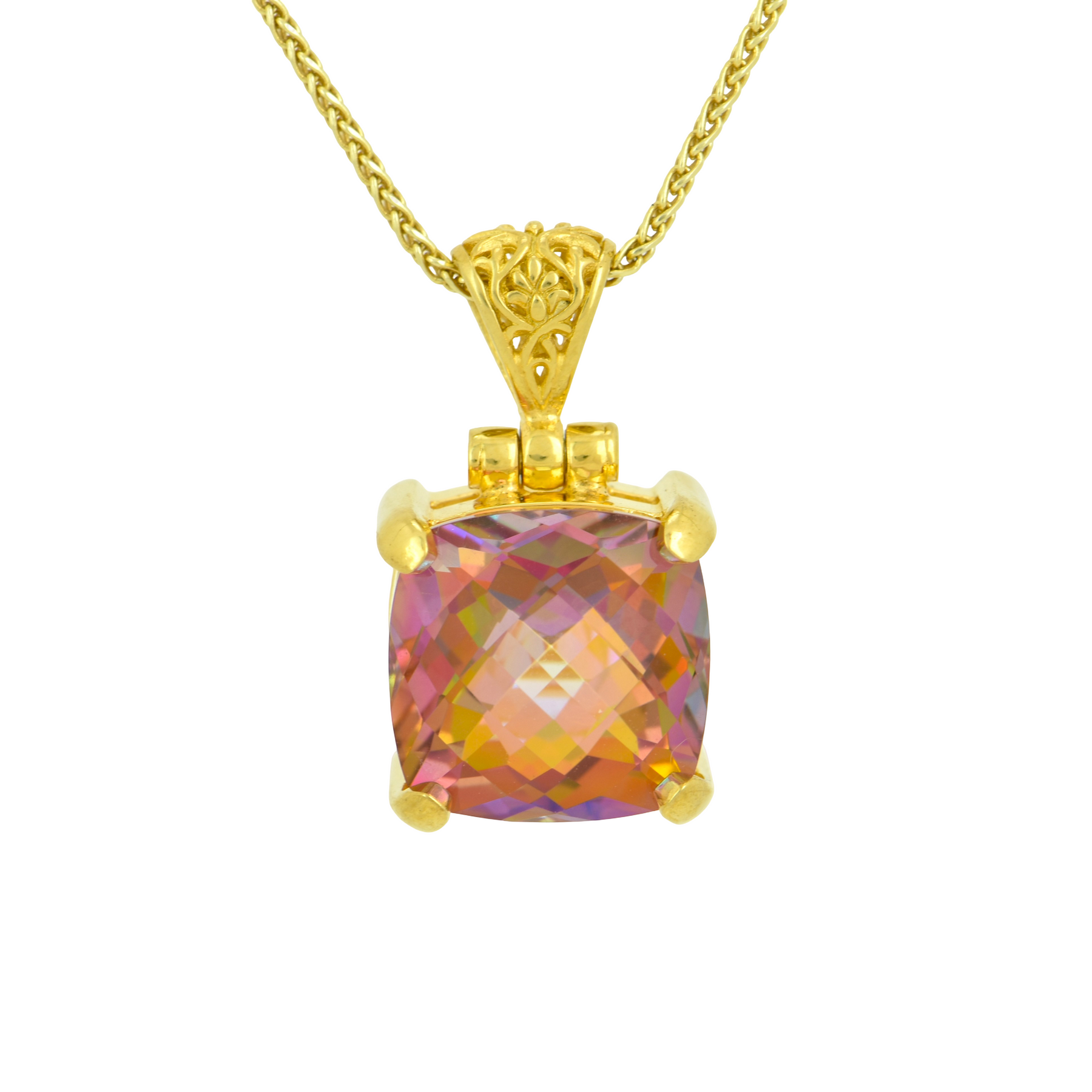 Cushion Cut Sunstar Mystic Quartz Pendant, set in Sterling Silver plated in Yellow Gold
