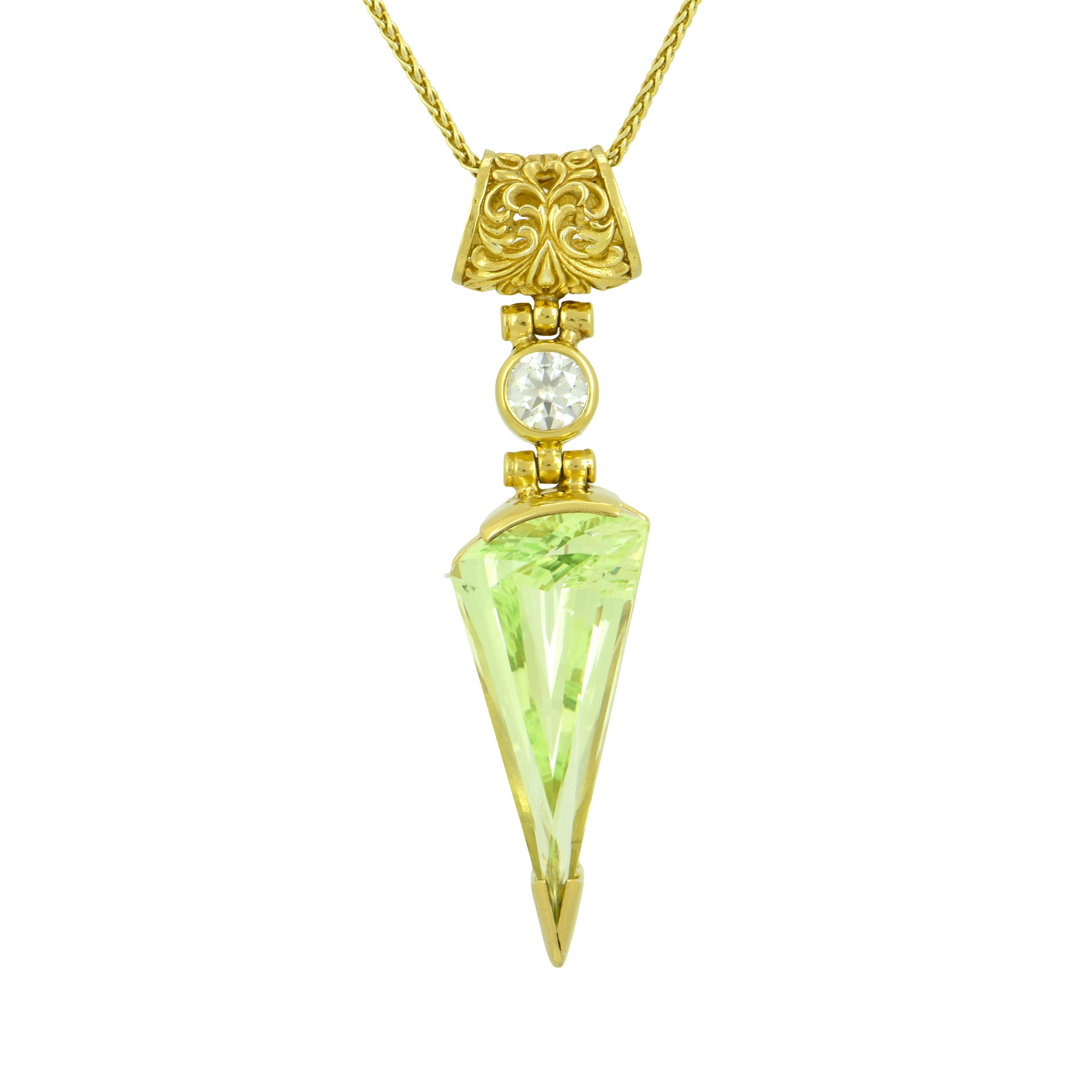 Mint Green Spinel Pendant, Fan Cut, set in Sterling Silver plated in Yellow Gold