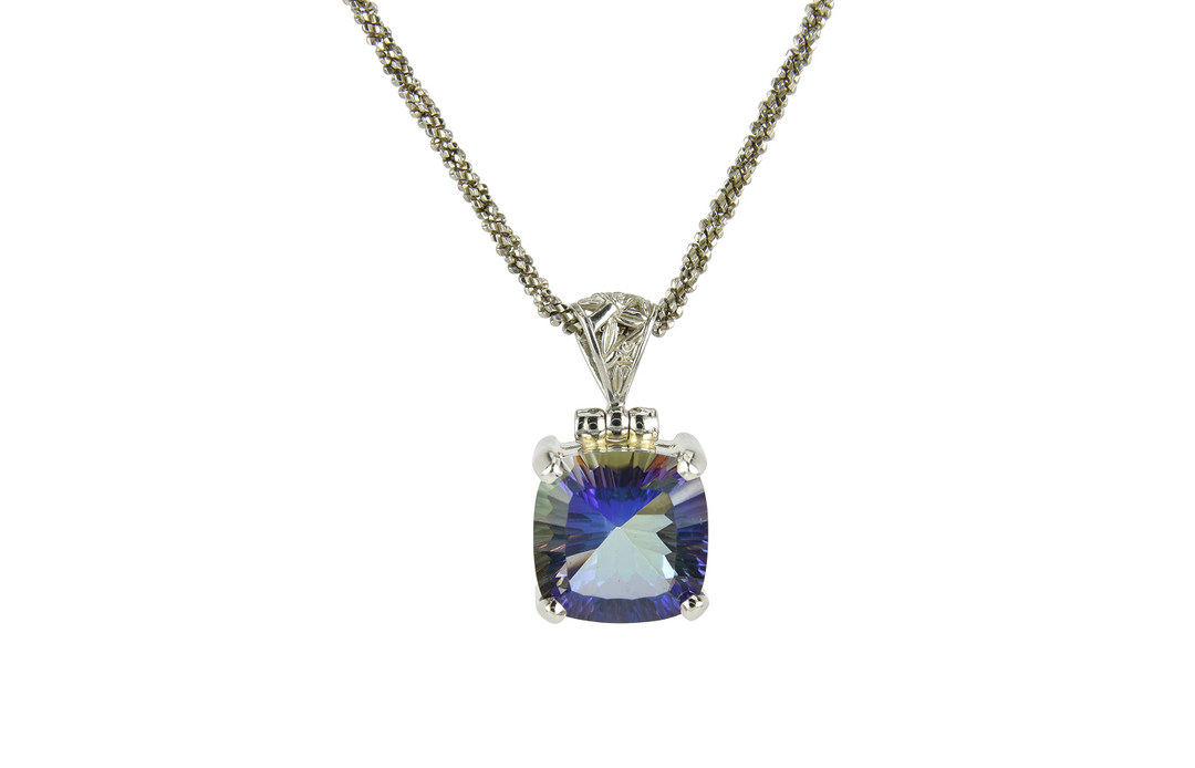 The Indigo Warrior Mystic Quartz collection brings together shimmering iridescence and unwavering strength to shield your energy, sharpen your inner vision, and guide you toward your highest truth. Mystic Quartz is natural clear quartz enhanced with a titanium or metallic coating to unleash a kaleidoscope of rainbow colors that evoke mystery, magic, and divine insight. This stone supports all chakras, especially the Third Eye and Crown, helping to heighten intuition and anchor clarity during times of transformation. Wear this jewellery as a sacred armour for your spirit, empowering you to face life with sacred strength, luminous courage and unshakeable alignment.