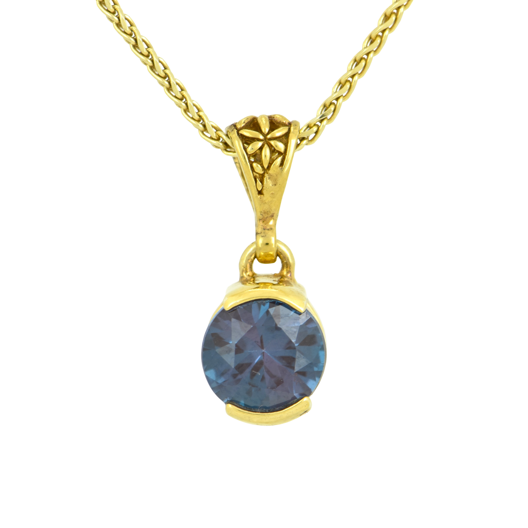 Alexandrite Chrysoberyl Pendant, Round Cut, set in Sterling Silver plated in Yellow Gold