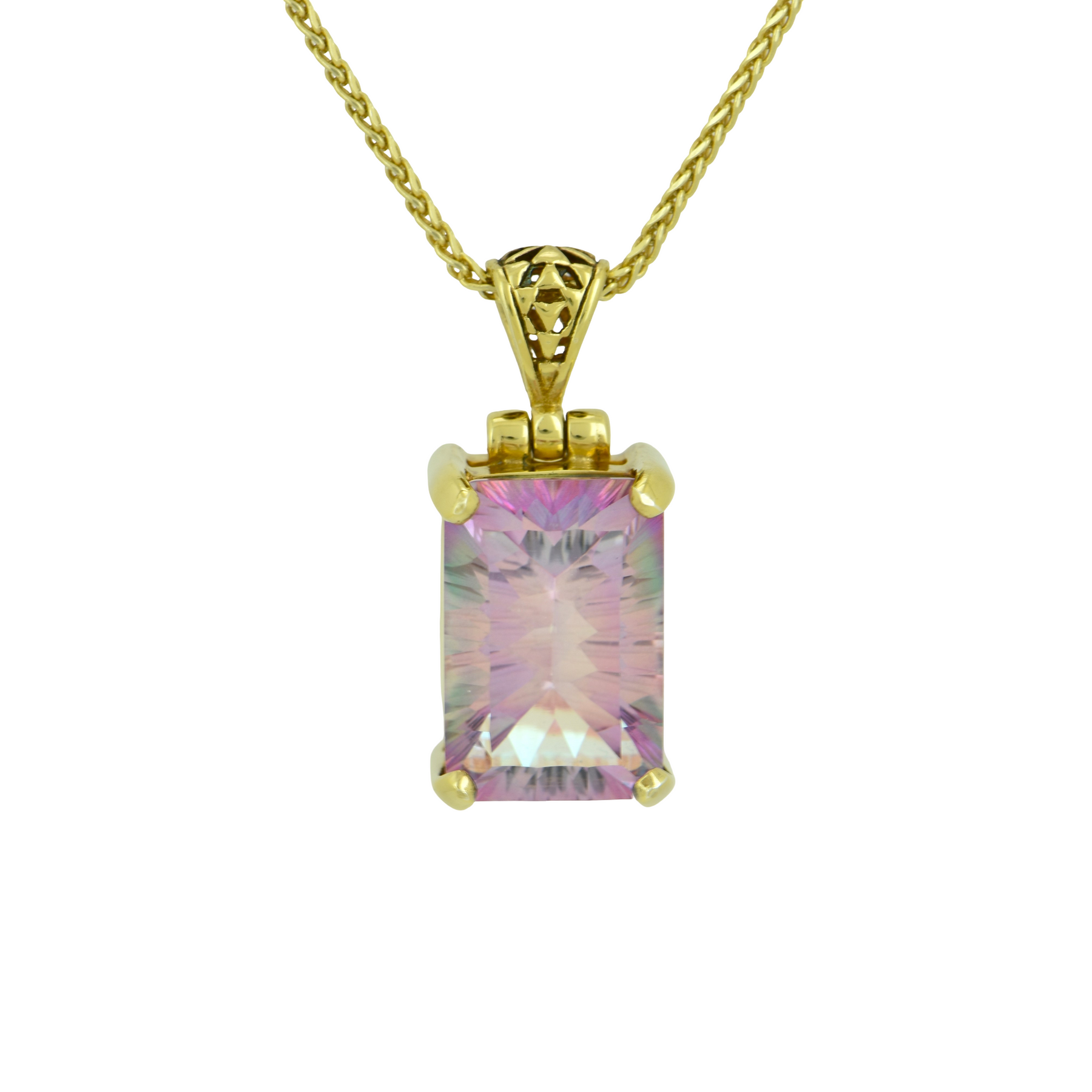 Emerald Cut Tara Mystic Quartz Pendant, set in Sterling Silver plated in Yellow Gold
