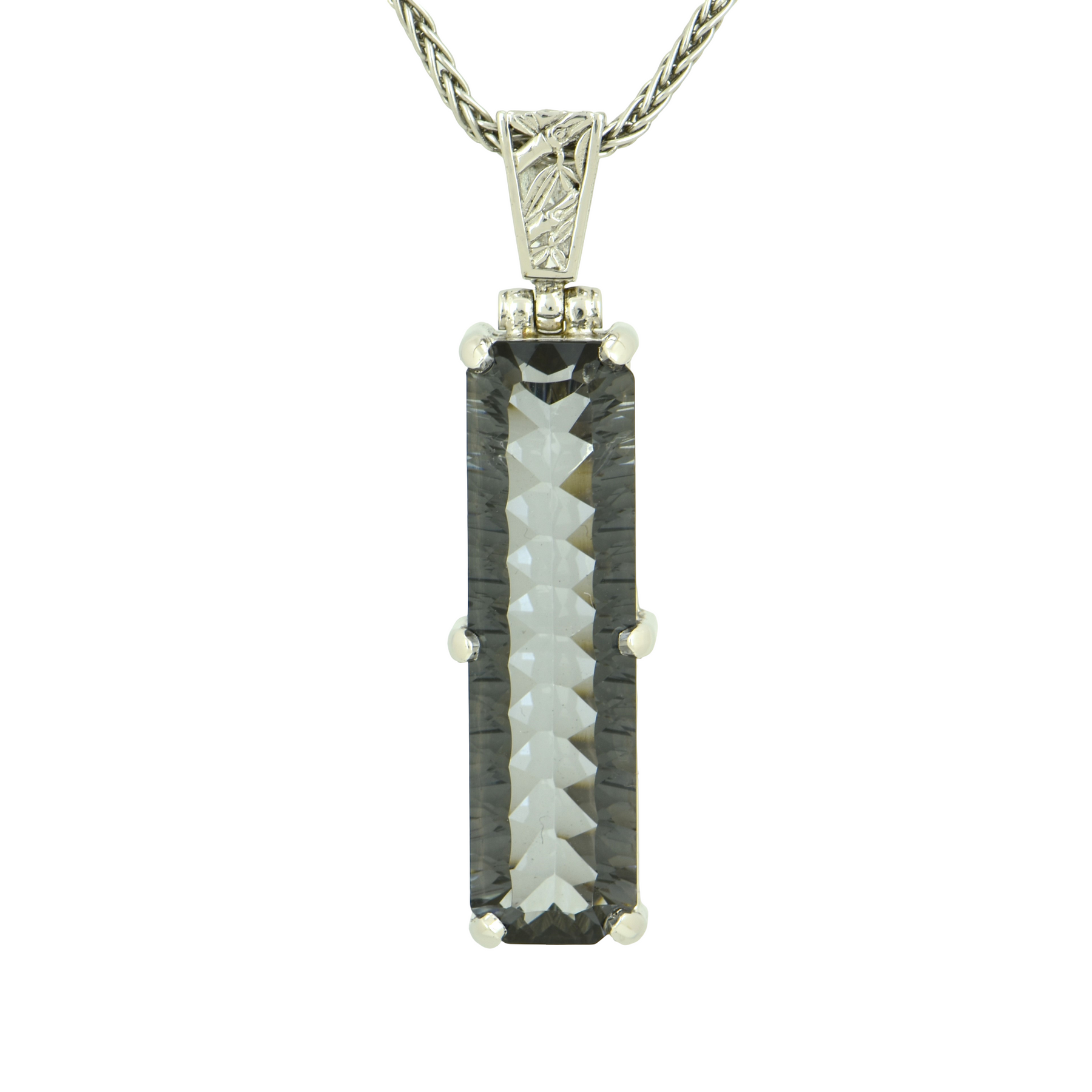Moonlight Mystic Quartz Pendant, Rectangle Cut, set in Sterling Silver plated in White Rhodium
