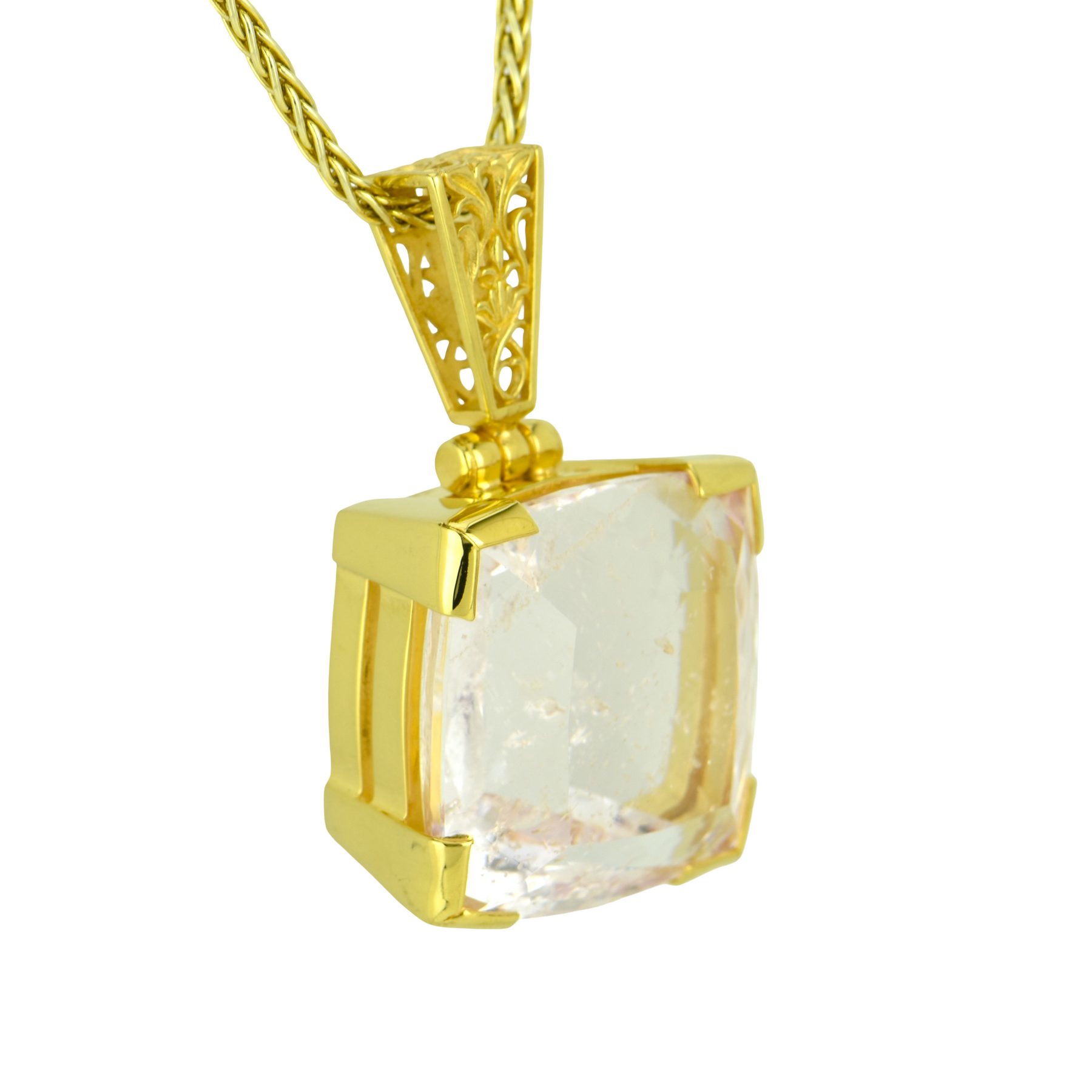 Ex Large square shape Morganite set in Sterling Silver plated in Yellow Gold