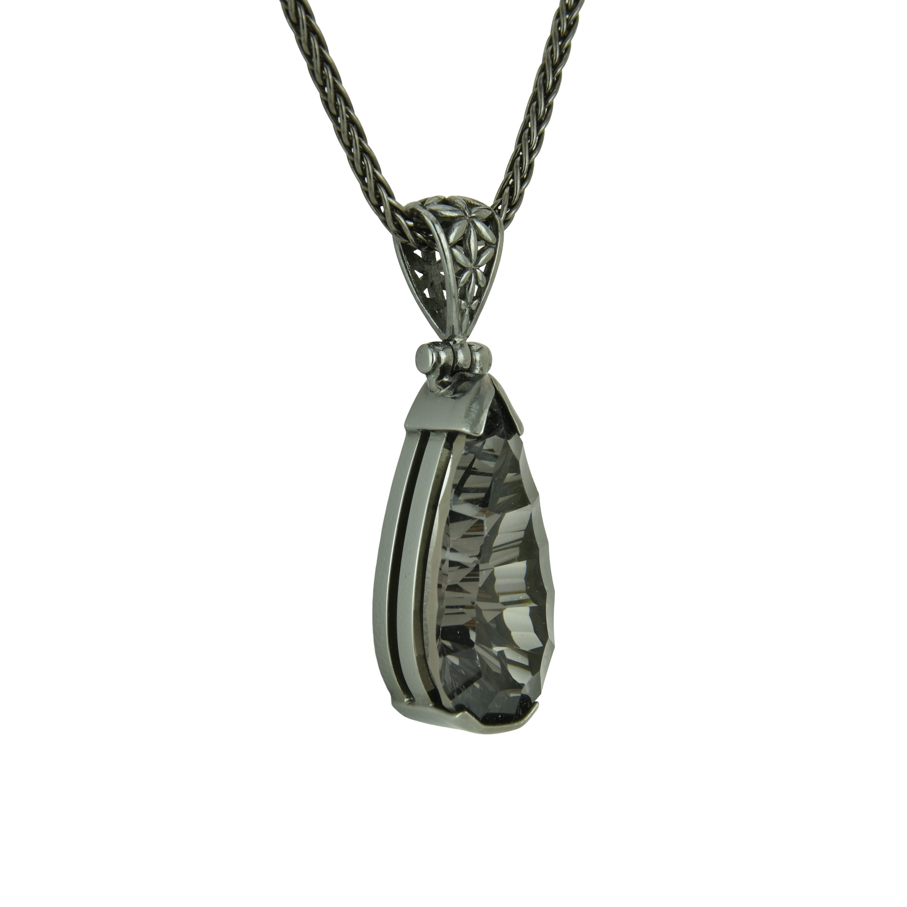 Medium pear shape Midnight Mystic Quartz set in Sterling Silver & plated in Black Rhodium