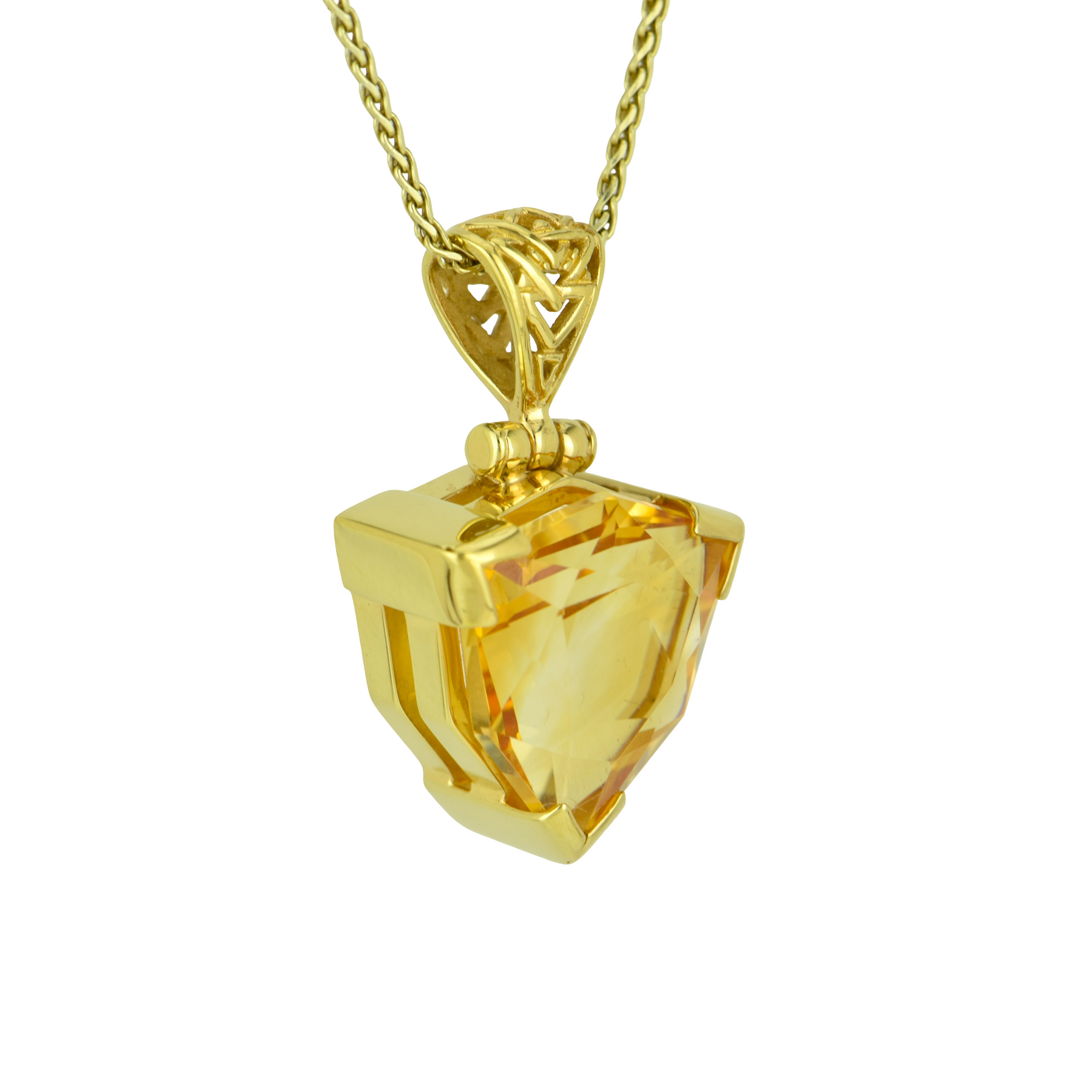 Medium 6 sided Trillion natural Citrine set in Sterling Silver & plated in Yellow Gold