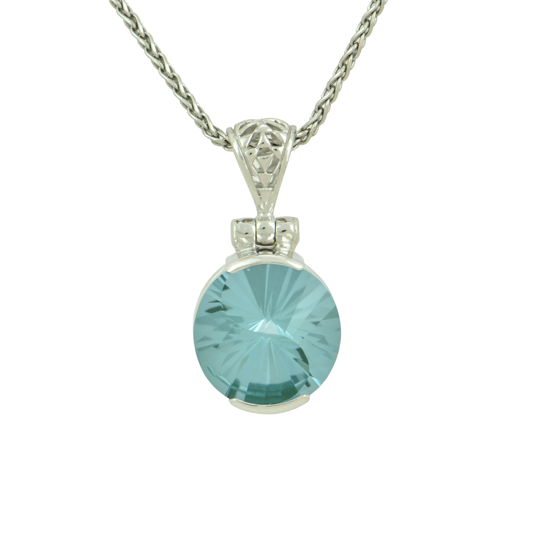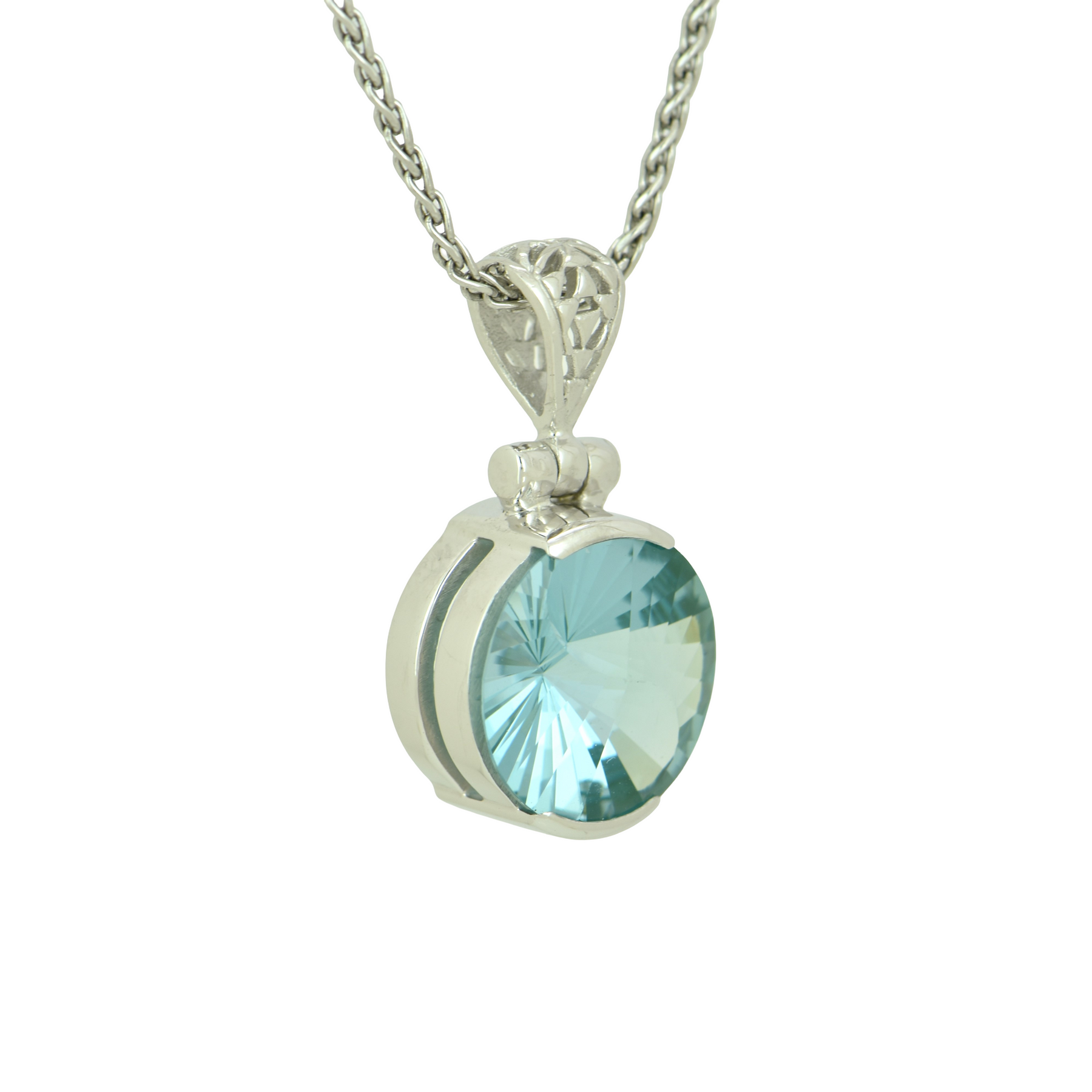 Round Paraiba Effect Spinel Pendant, set in Sterling Silver plated in White Rhodium