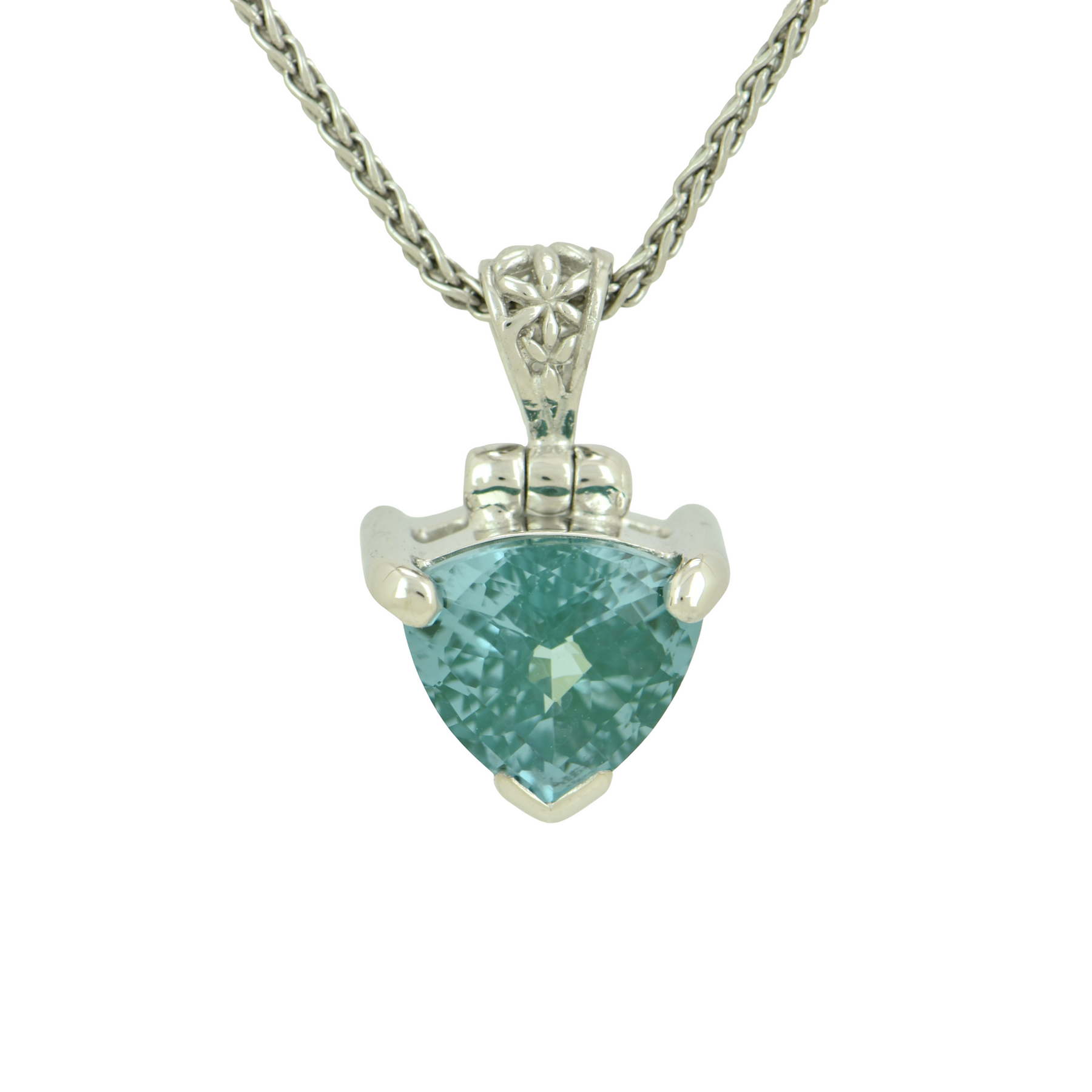 Trillion Paraiba Effect Spinel Pendant, set in Sterling Silver plated in White Rhodium