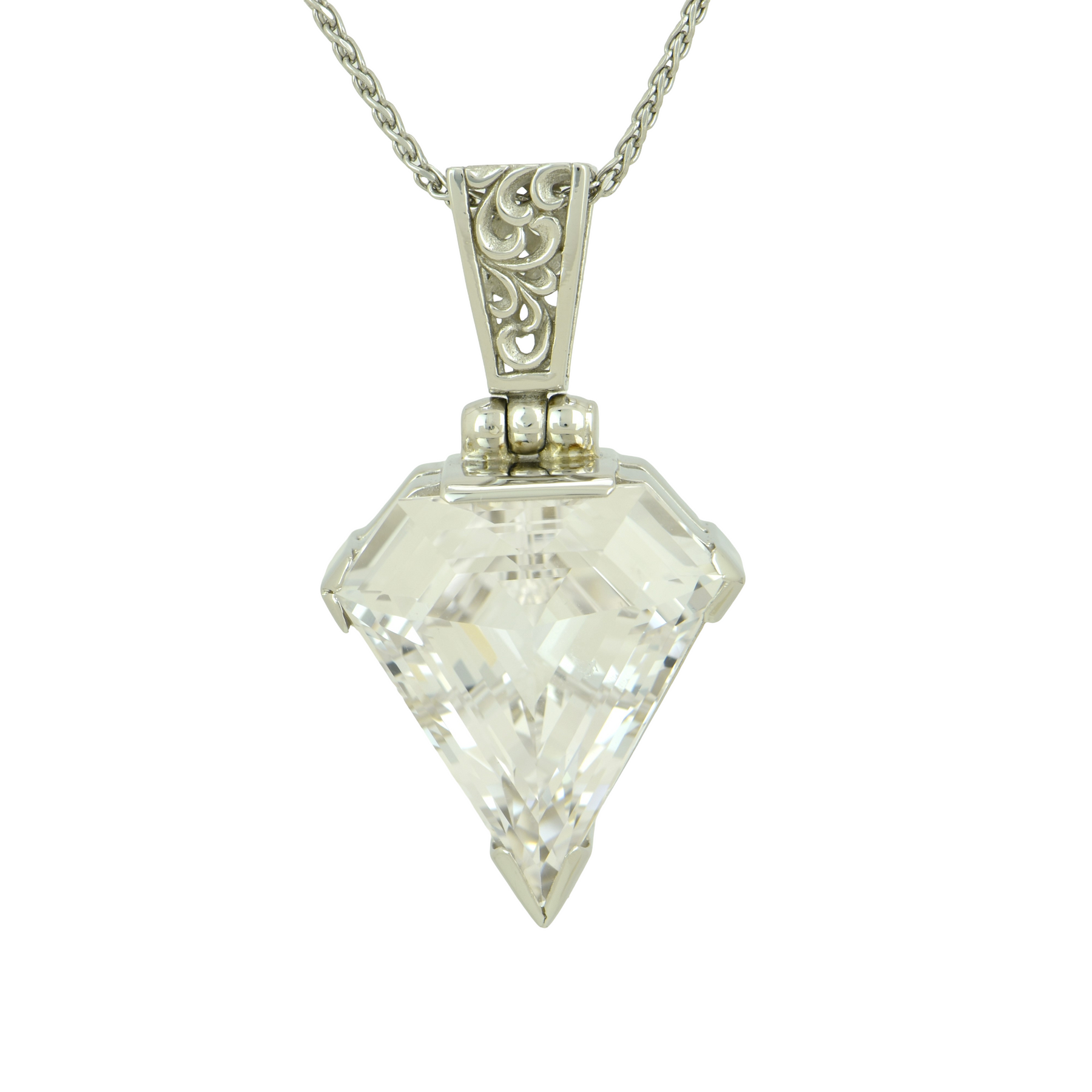 Large Superman shape White Sapphire set in Sterling Silver plated in White Rhodium