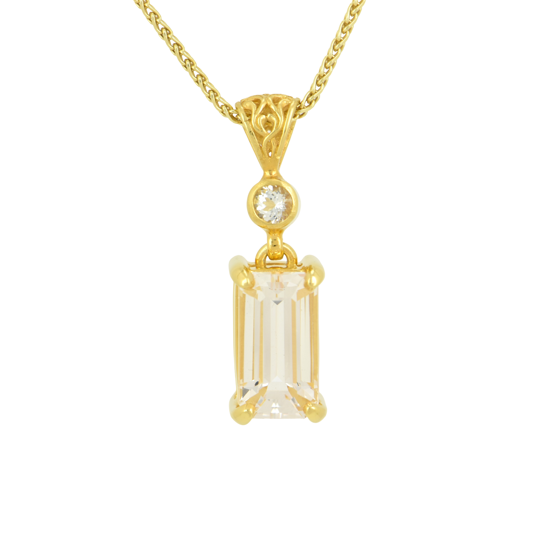 Emerald Cut Danburite Pendant, set in Sterling Silver plated in Yellow Gold