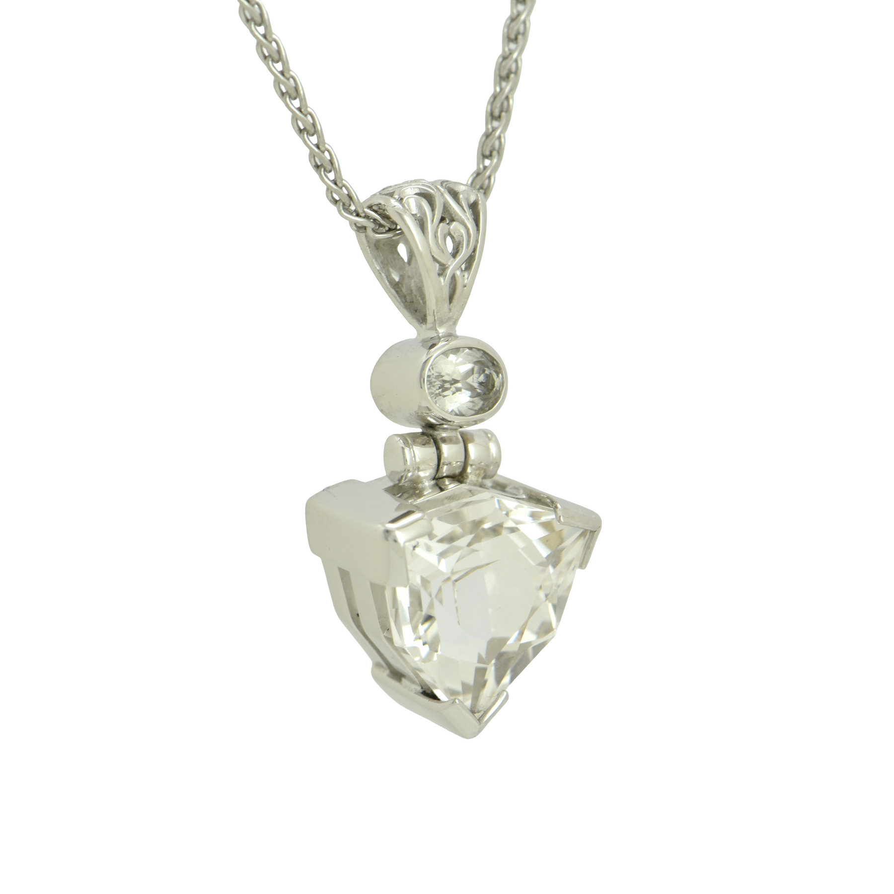 Trillion Danburite Pendant, set in Sterling Silver plated in White Rhodium