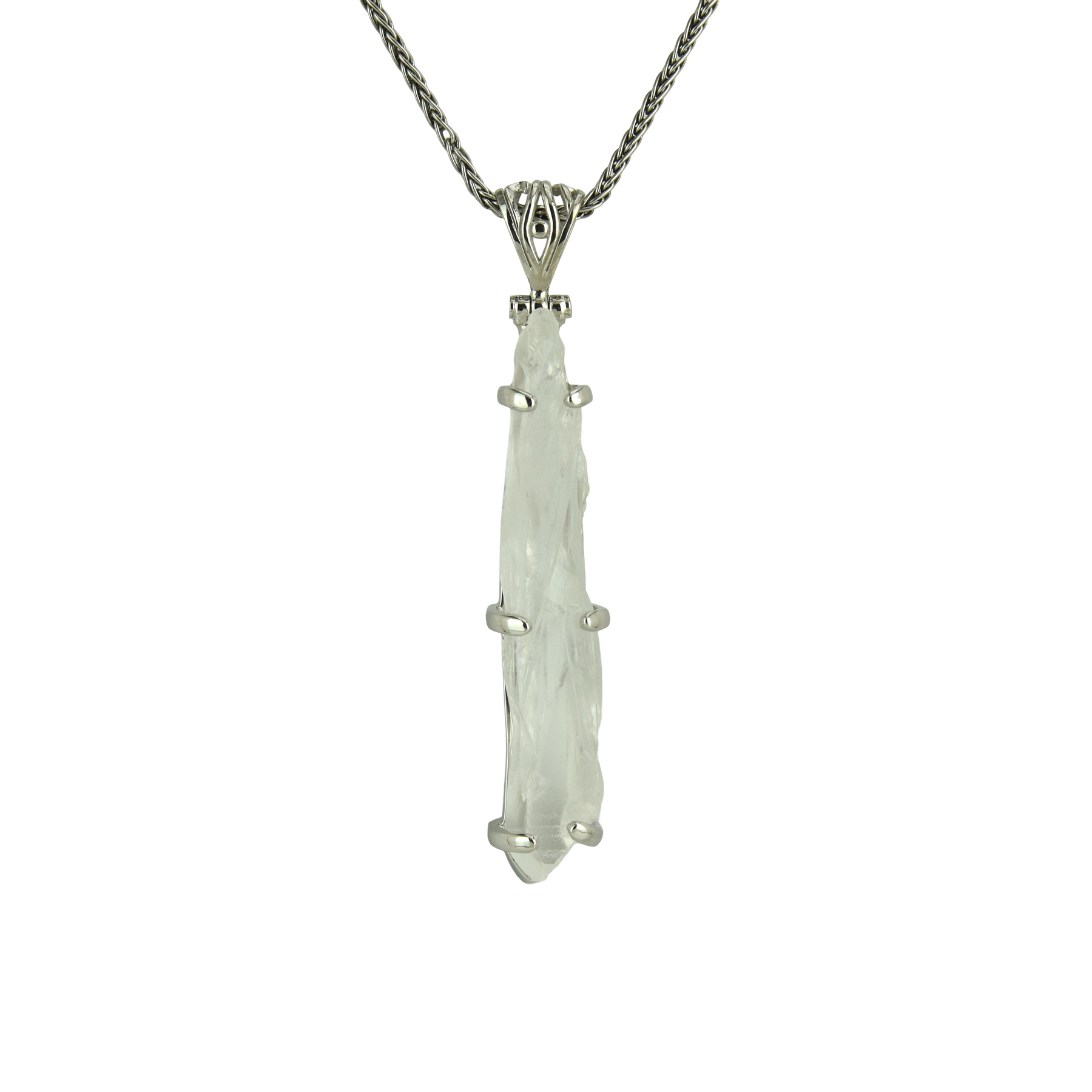 Large Lemurian Quartz set in Sterling Silver & plated in White Rhodium