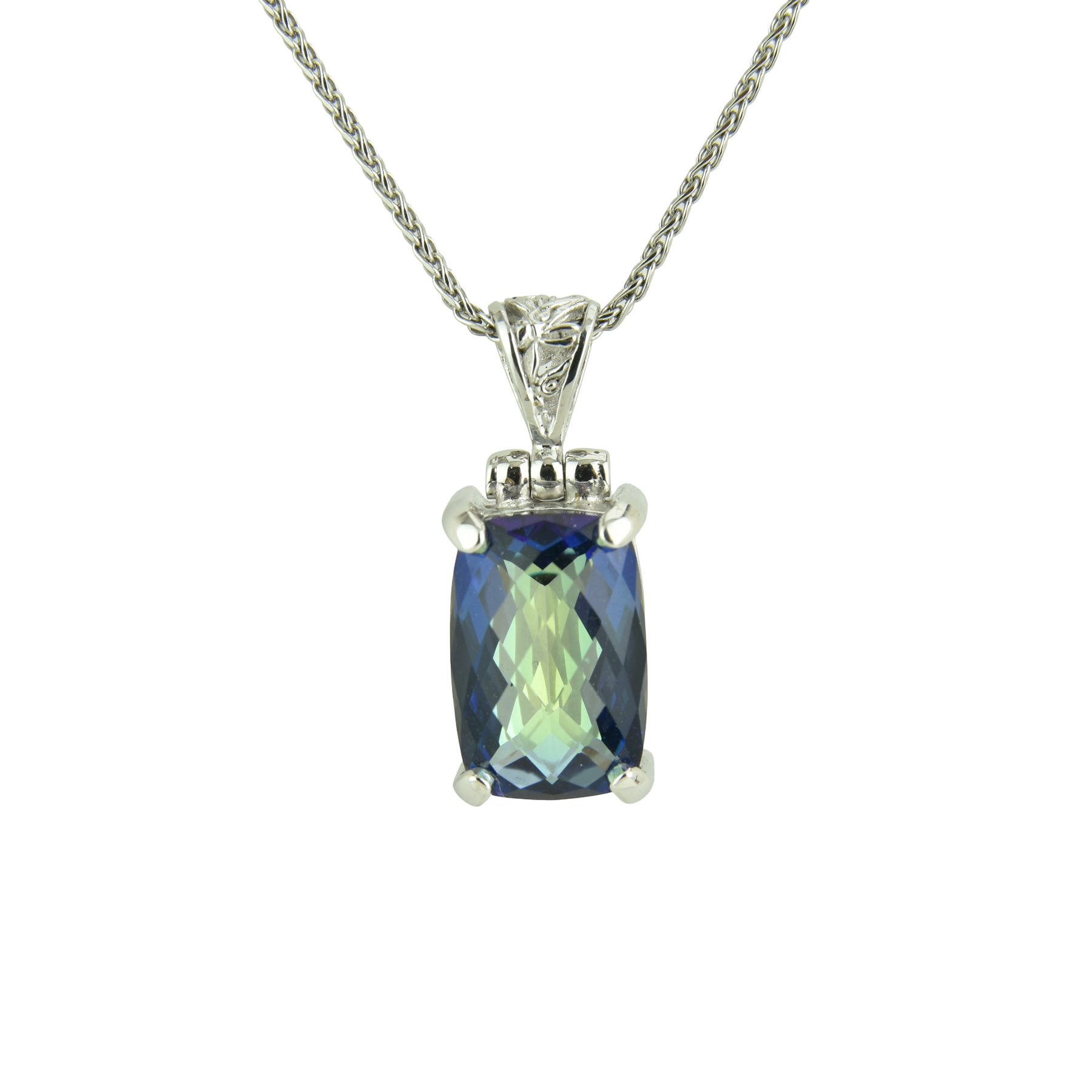Medium rectangle Indigo Warrior Mystic Quartz set in Sterling Silver & plated in White Rhodium