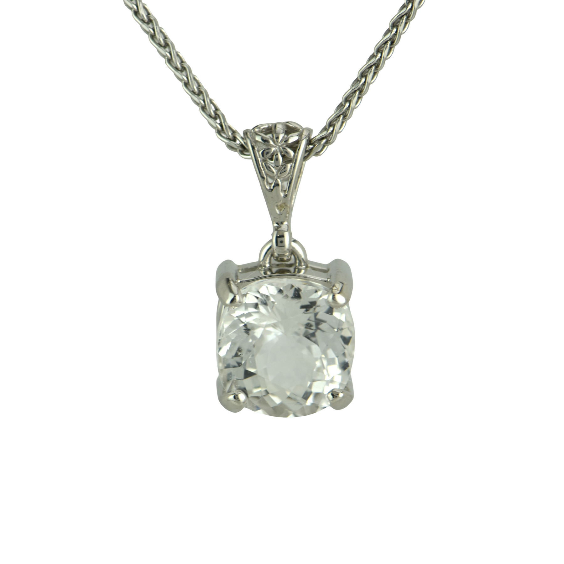 Small square natural Phenakite set in Sterling Silver & plated in White Rhodium