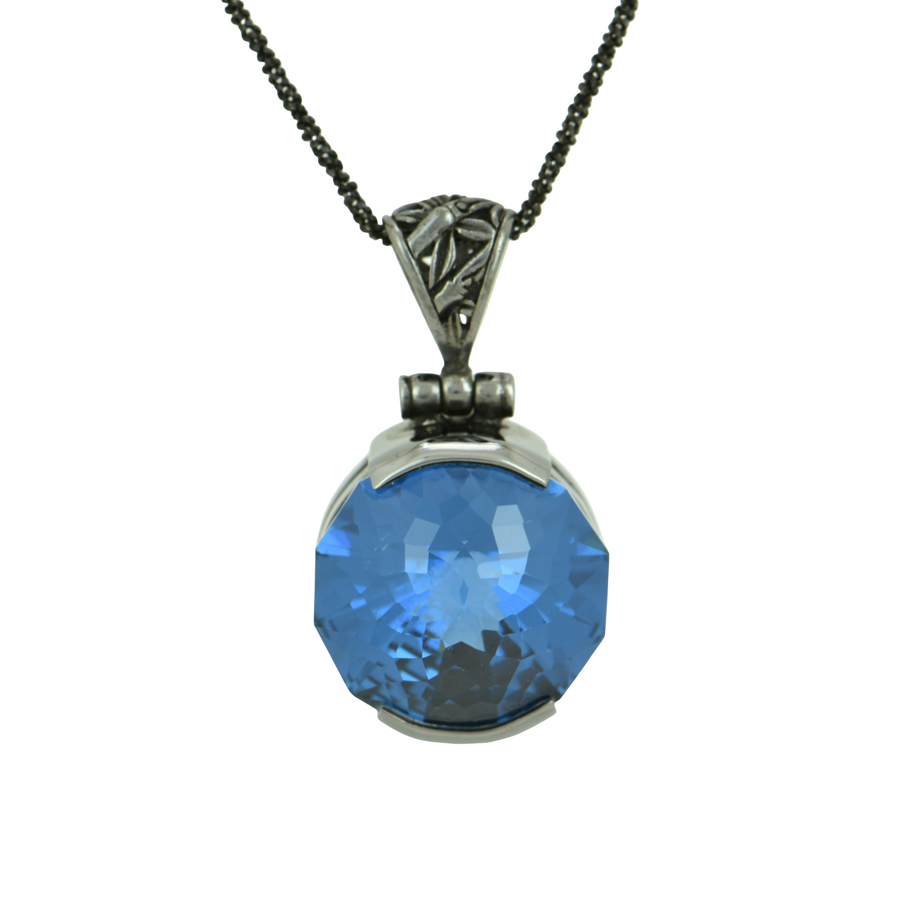 Round Blue Green Spinel Pendant, set in Sterling Silver plated in Black Rhodium