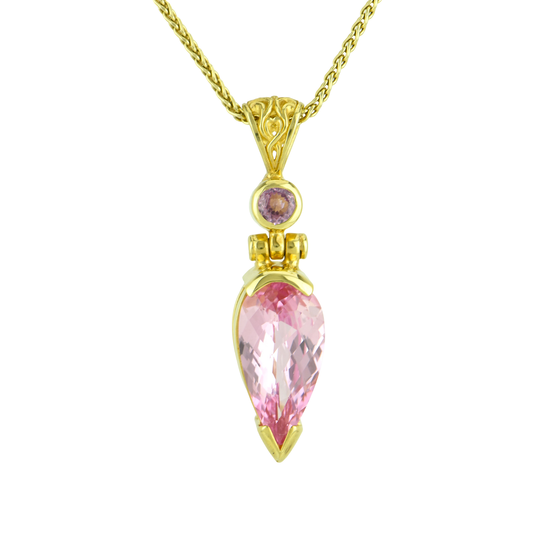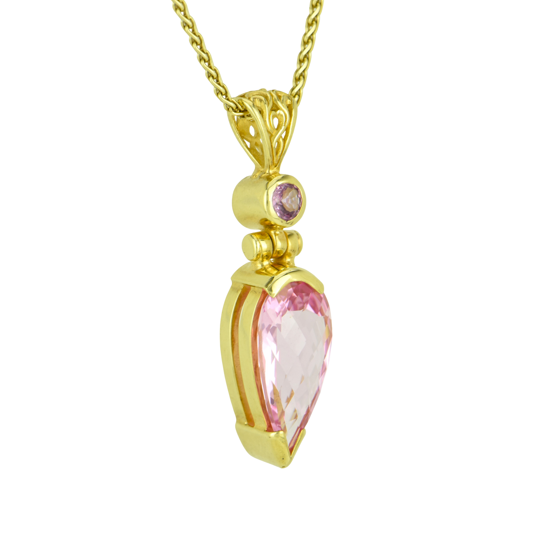Small pear shape Imperial Pink Sapphire paired with a Pink Imperial Sapphire set in Sterling Silver & plated in Yellow Gold
