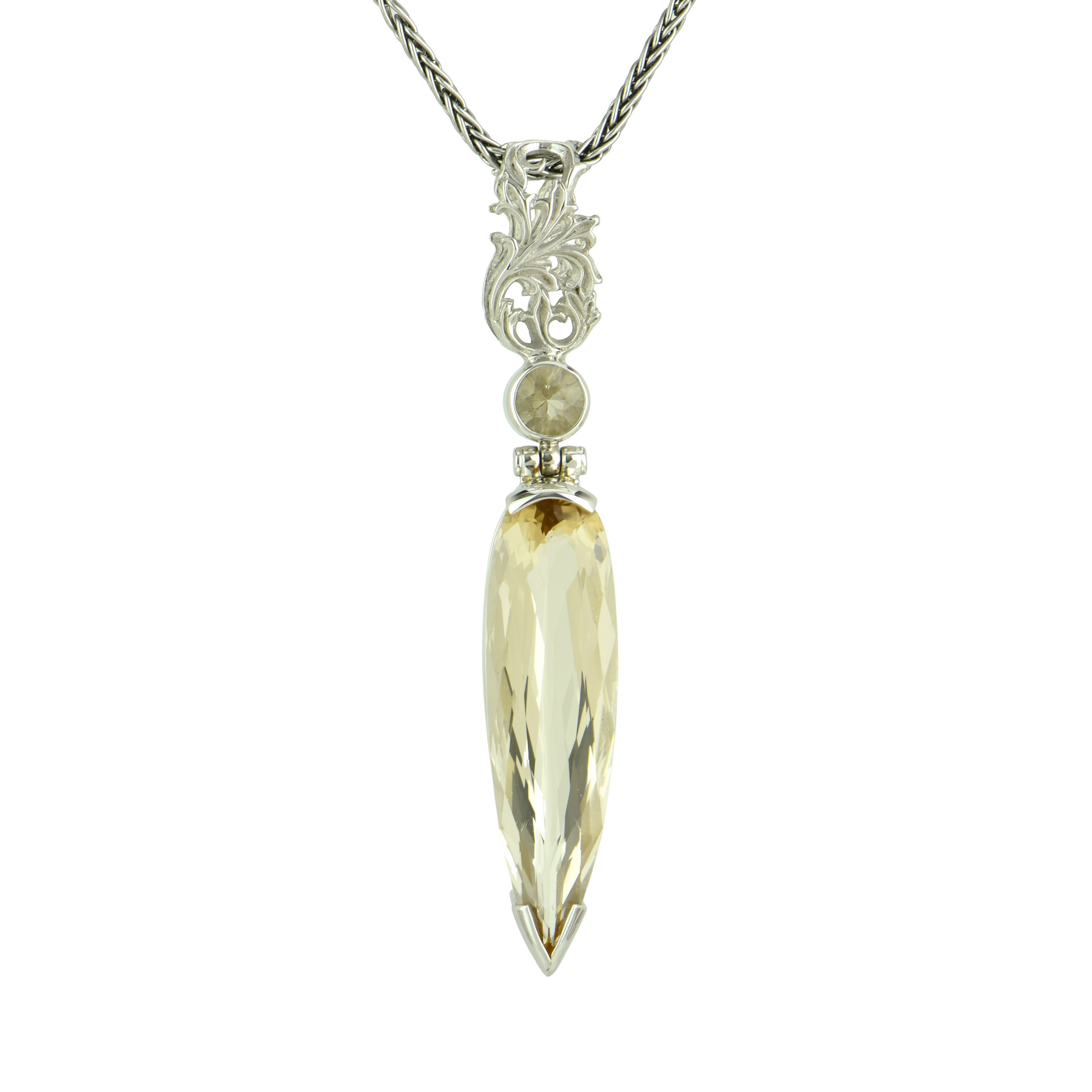 Long pear shape Scapolite paired with Scapolite set in Sterling Silver plated in White Rhodium