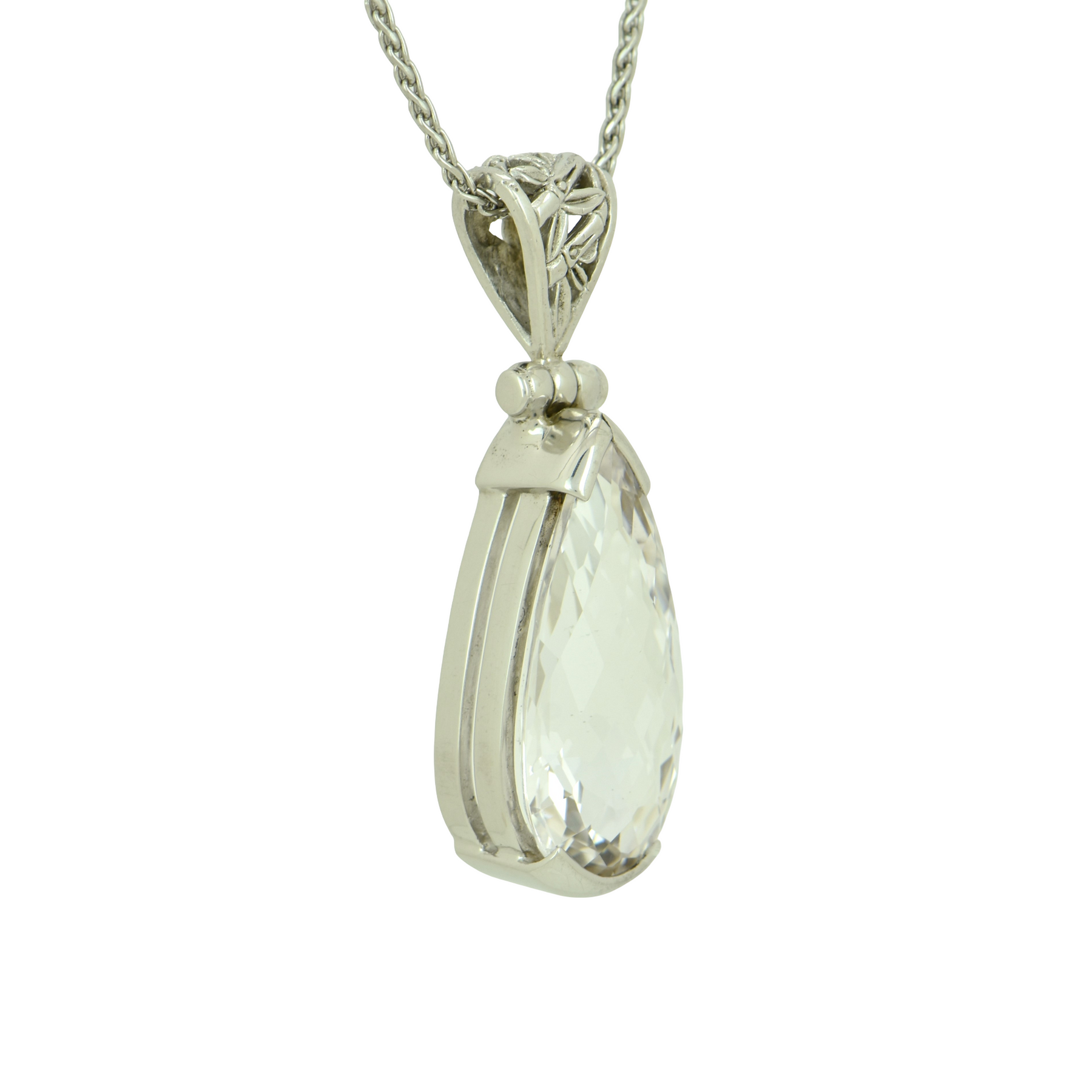 Pear Cut White Sapphire Pendant, set in Sterling Silver plated in White Rhodium