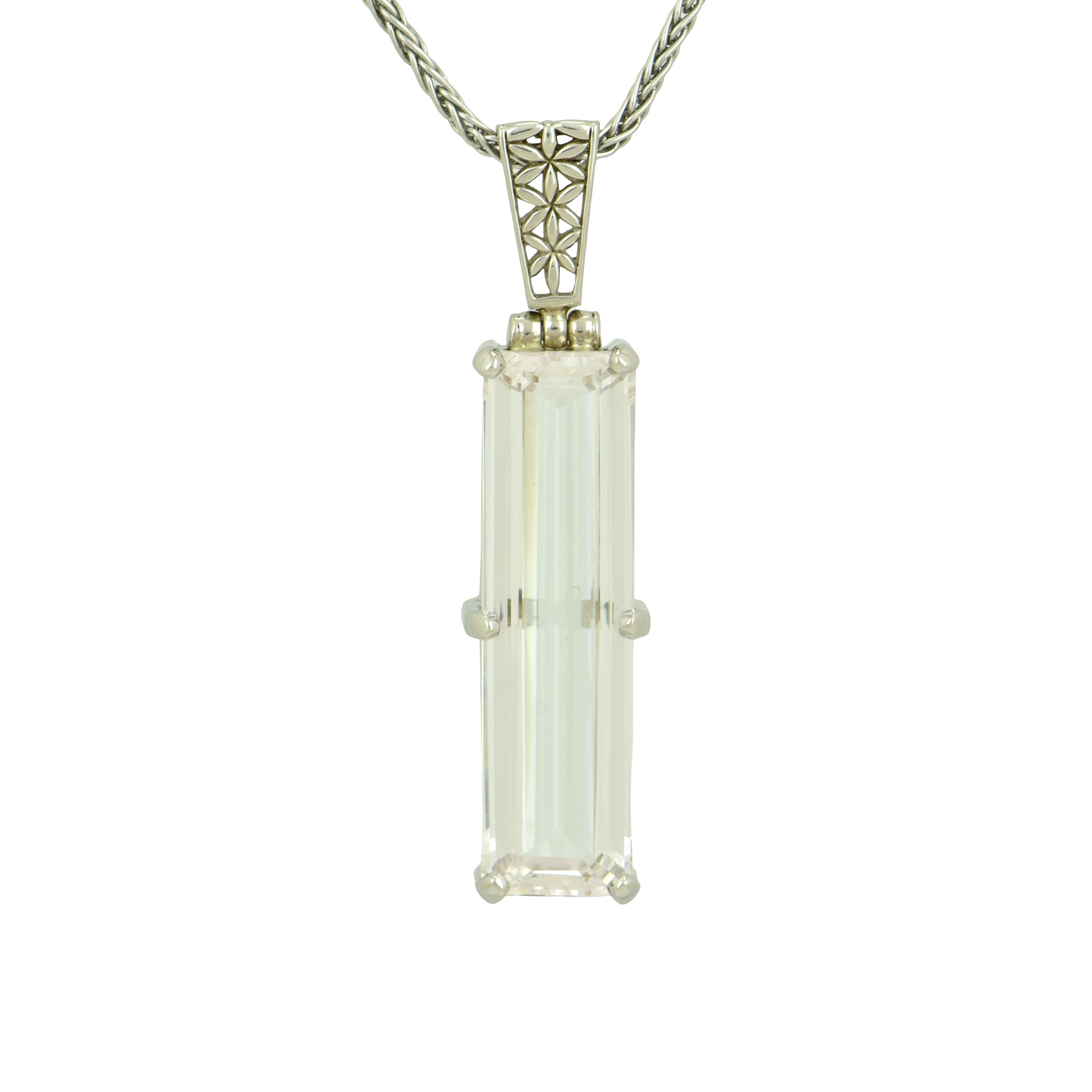Emerald Cut White Sapphire Pendant, set in Sterling Silver plated in White Rhodium