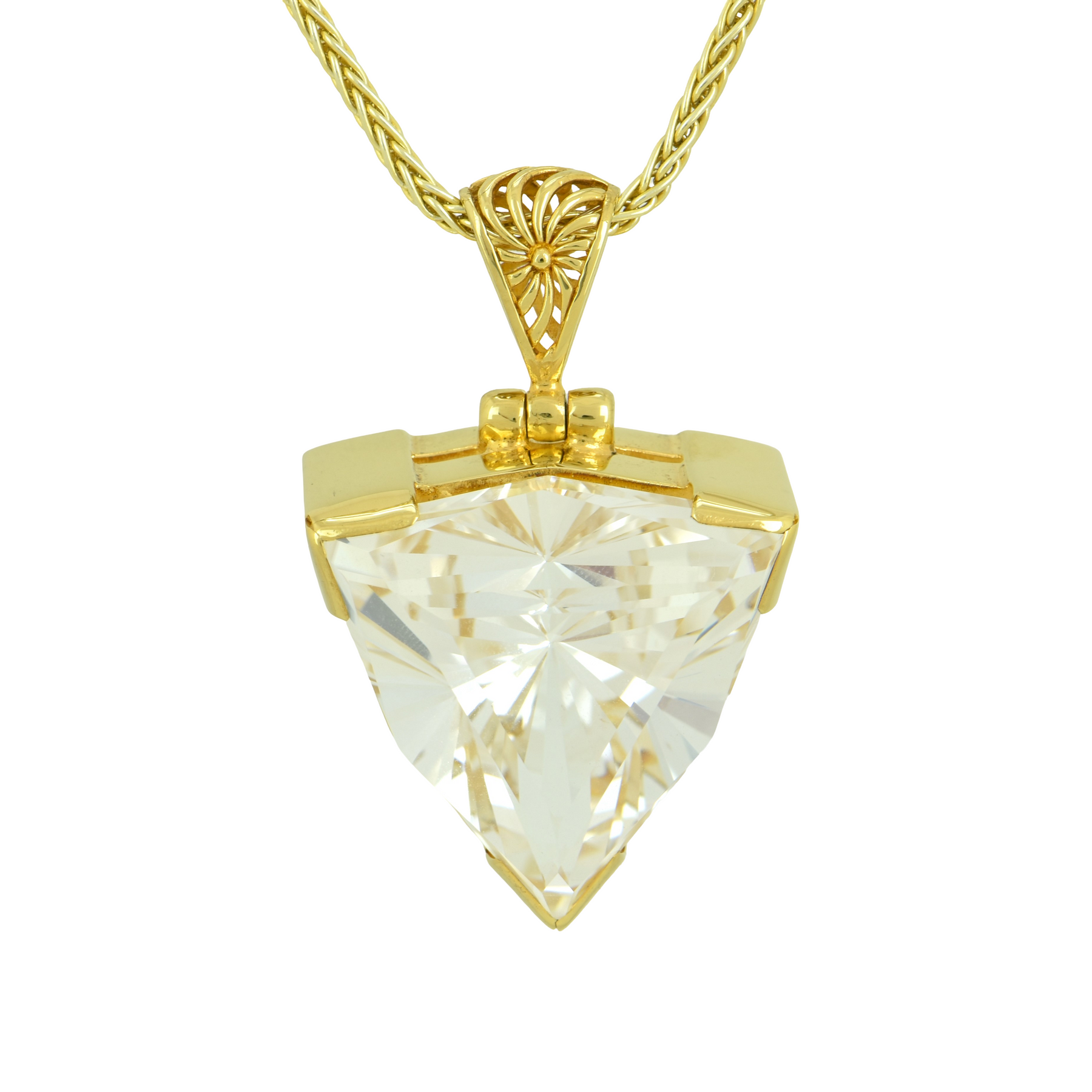 White Sapphire Pendant, Galactic Cut, set in Sterling Silver plated in Yellow Gold