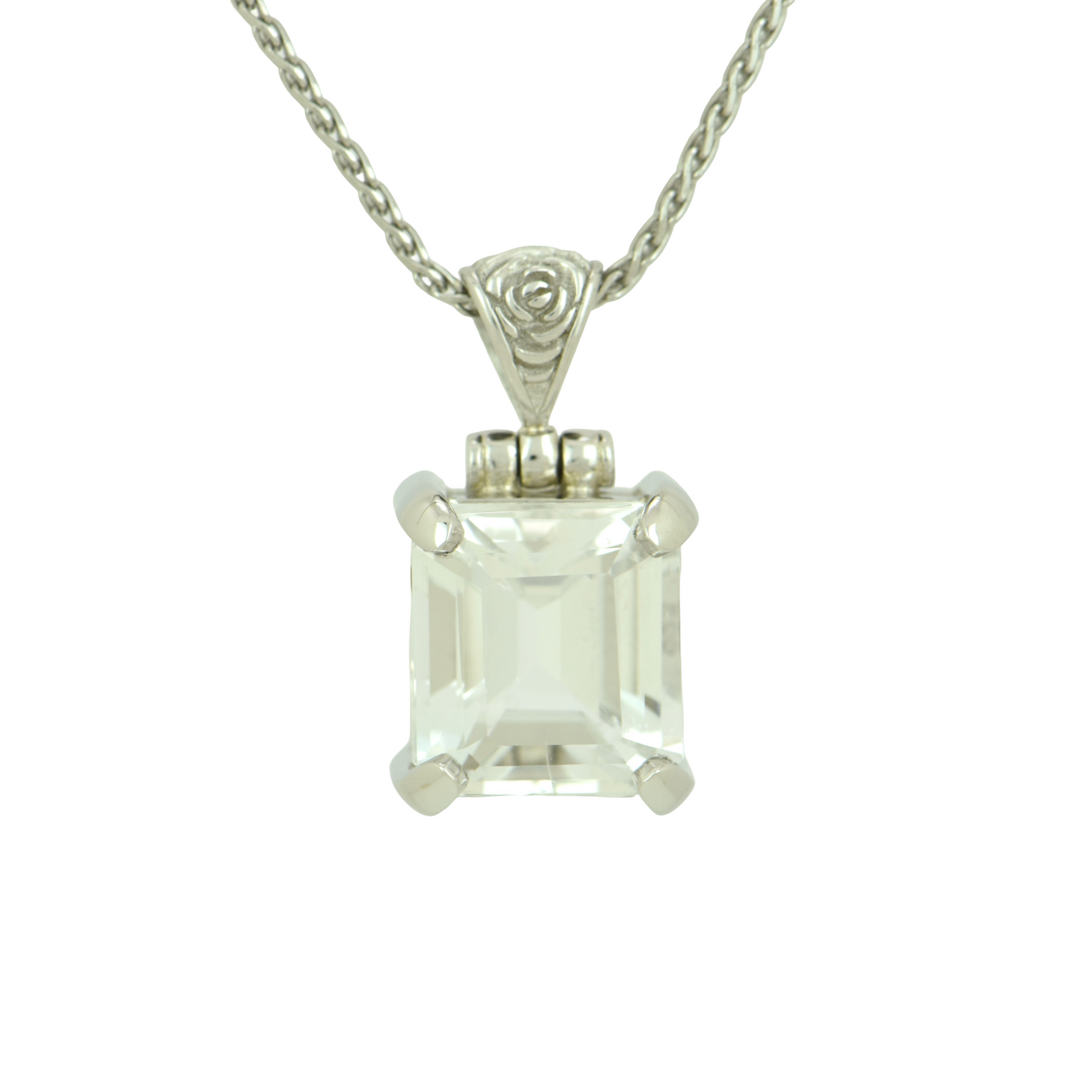 Emerald Cut Petalite Pendant, set in Sterling Silver plated in White Rhodium