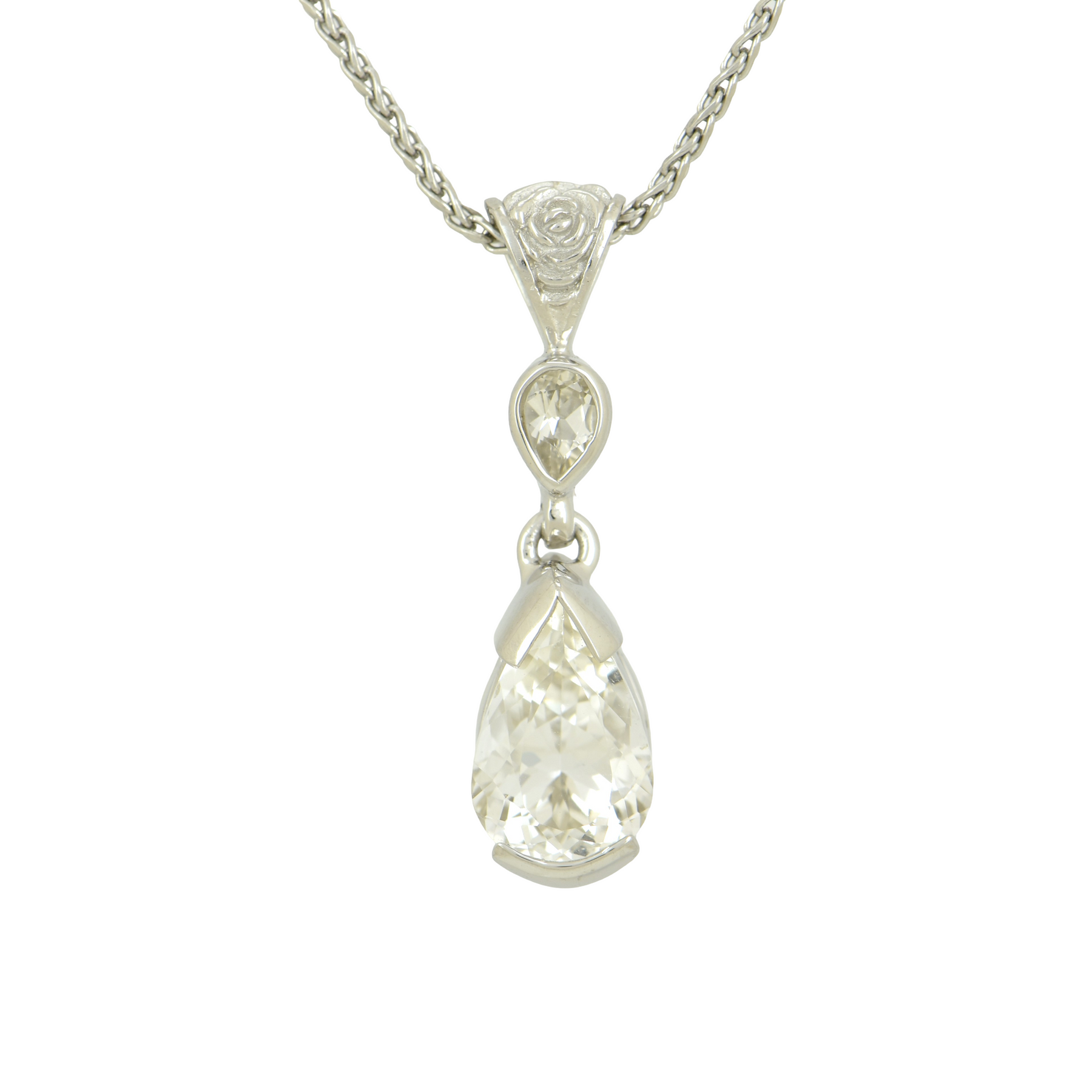 Phenakite Pendant, Pear Cut, set in Sterling Silver plated in White Rhodium