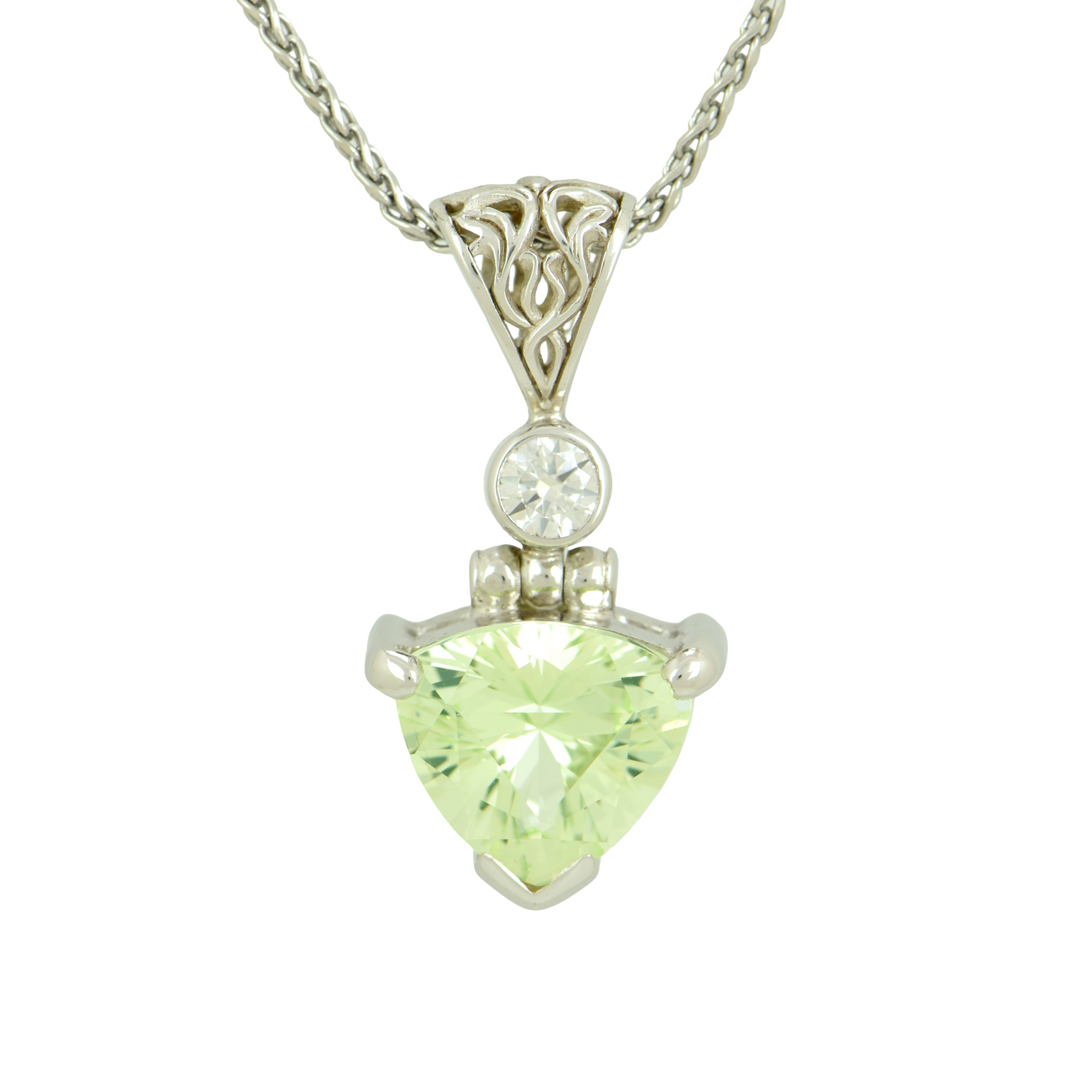 Mint Green Spinel Pendant, Trillion Cut, set in Sterling Silver plated in White Rhodium