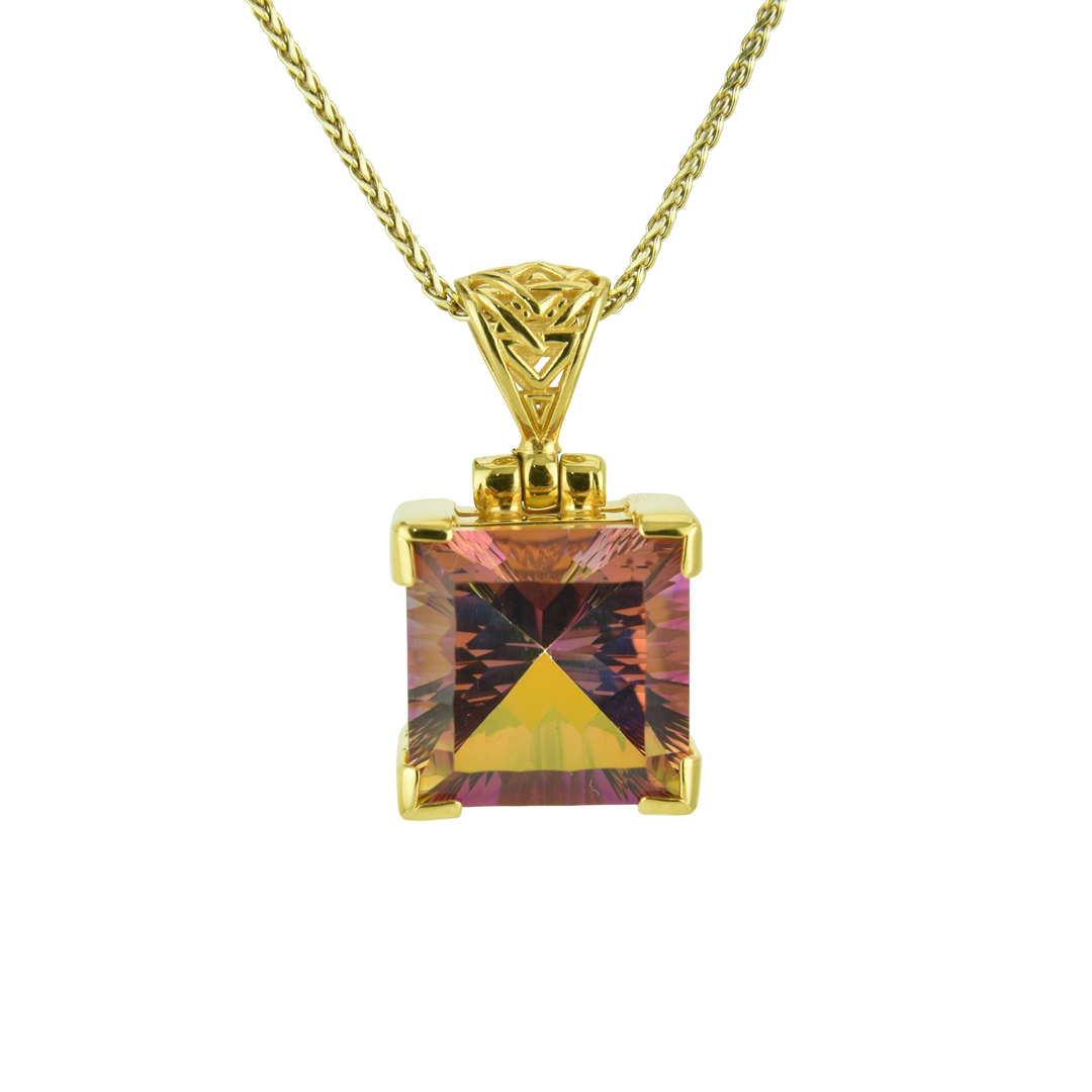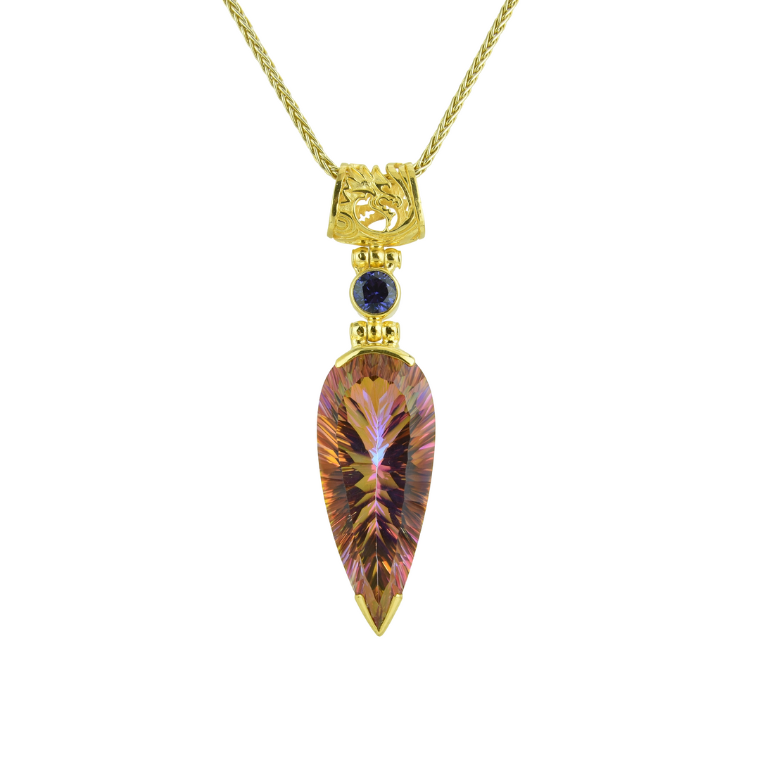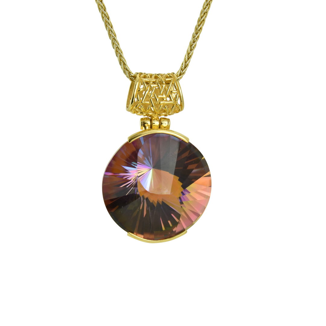 The Sunstar Mystic Quartz collection features crystal gemstone pendants that shine with solar brilliance and cosmic vitality. Known for its fiery iridescence, this stone energizes the spirit, clears stagnation and awakens creativity. It inspires radiant joy and confidence, guiding you to step forward with clarity and purpose. This high vibrational jewellery channels the warmth of the sun, illuminating your path with vitality, empowerment and light.