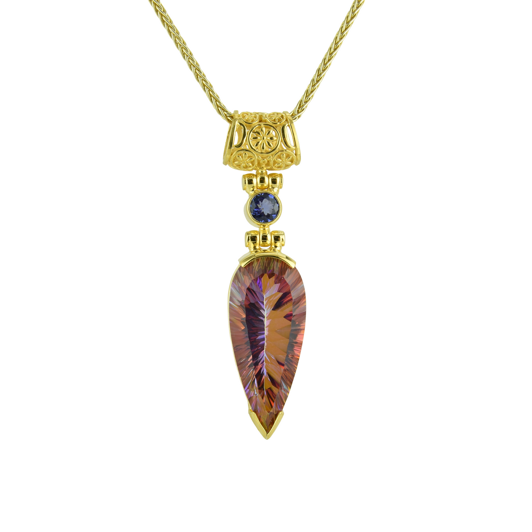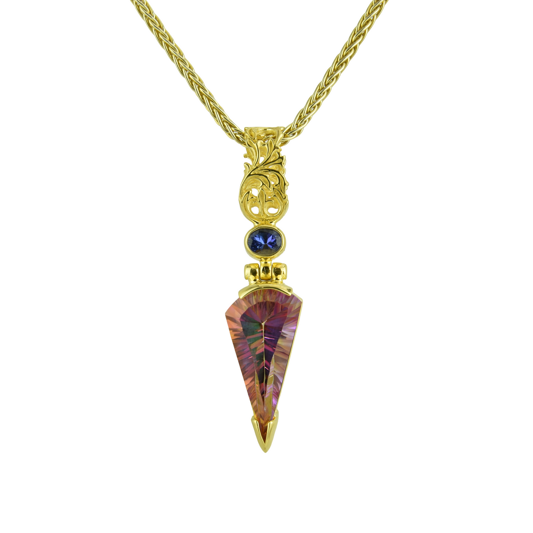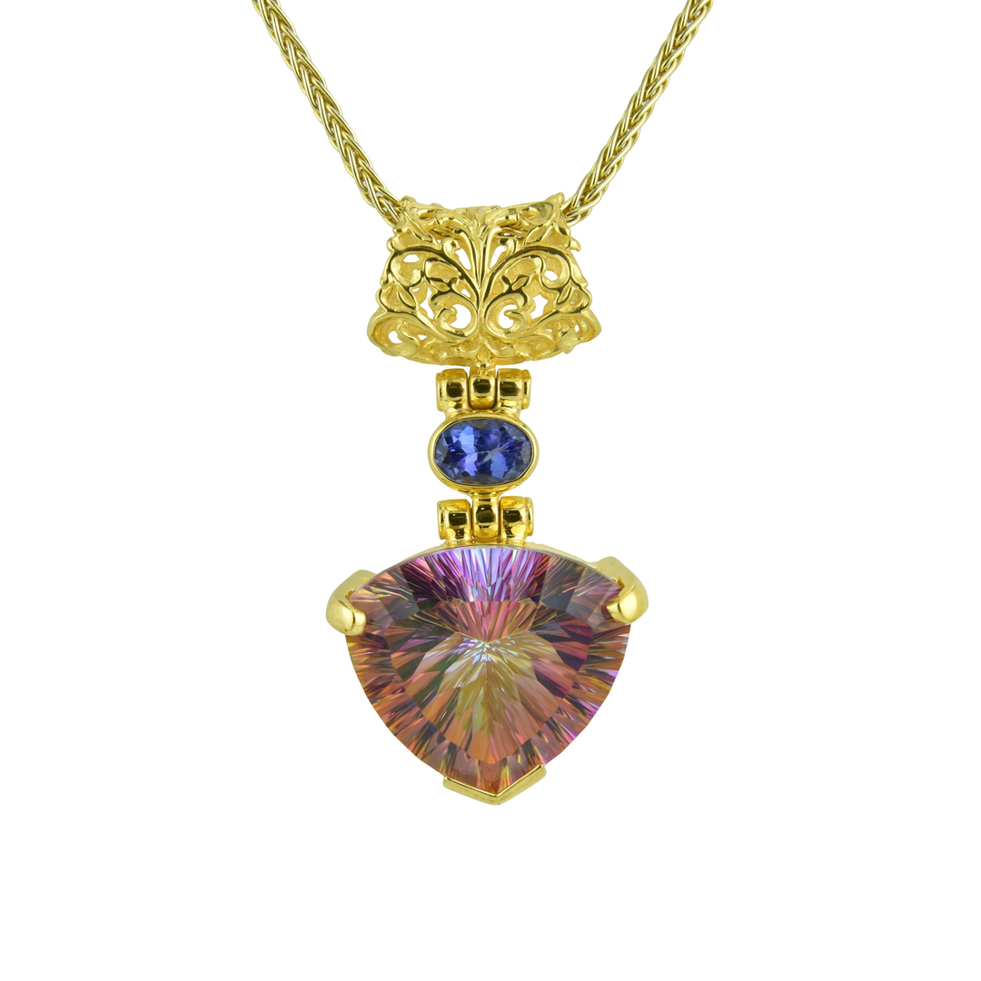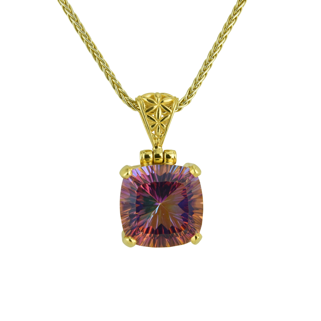 The Sunstar Mystic Quartz collection features crystal gemstone pendants that shine with solar brilliance and cosmic vitality. Known for its fiery iridescence, this stone energizes the spirit, clears stagnation and awakens creativity. It inspires radiant joy and confidence, guiding you to step forward with clarity and purpose. This high vibrational jewellery channels the warmth of the sun, illuminating your path with vitality, empowerment and light.