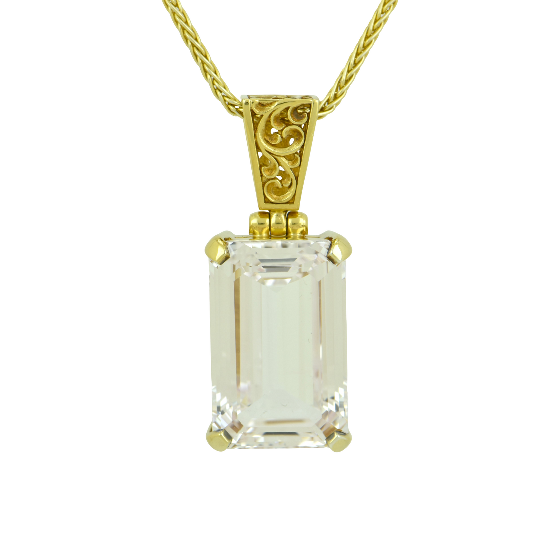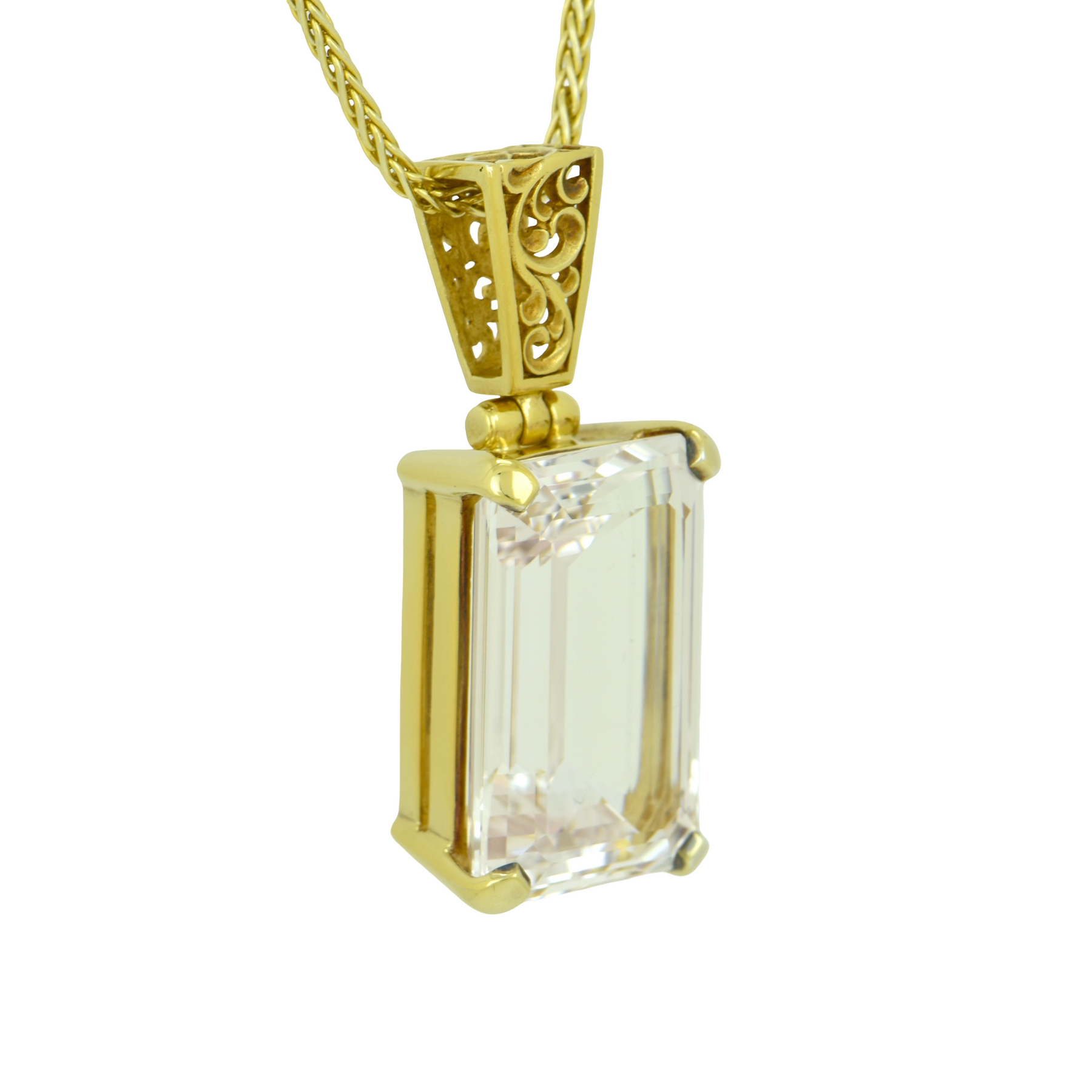 Large rectangle shape White Sapphire set in Sterling Silver plated in Yellow Gold
