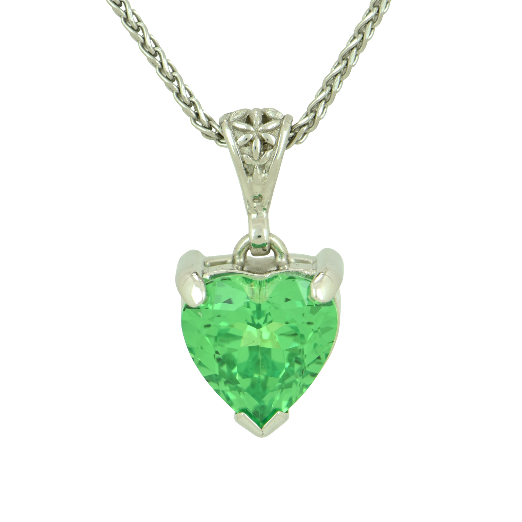 YAG Tsavorite Garnet Pendant, Heart-Shaped, set in Sterling Silver plated in White Rhodium