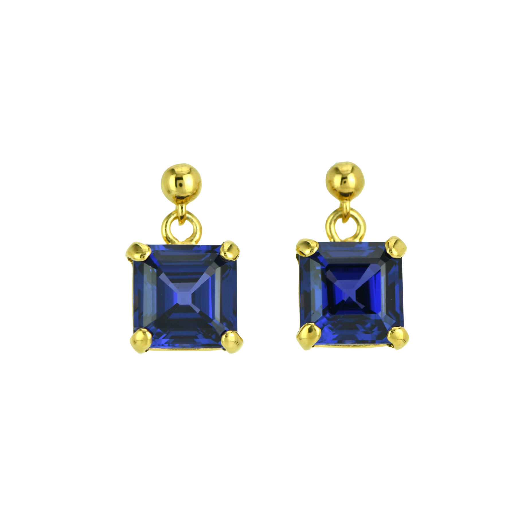 Zao Gongen YAG Tanzanite square shape dangle stud earrings set in Sterling Silver plated in Yellow Gold
