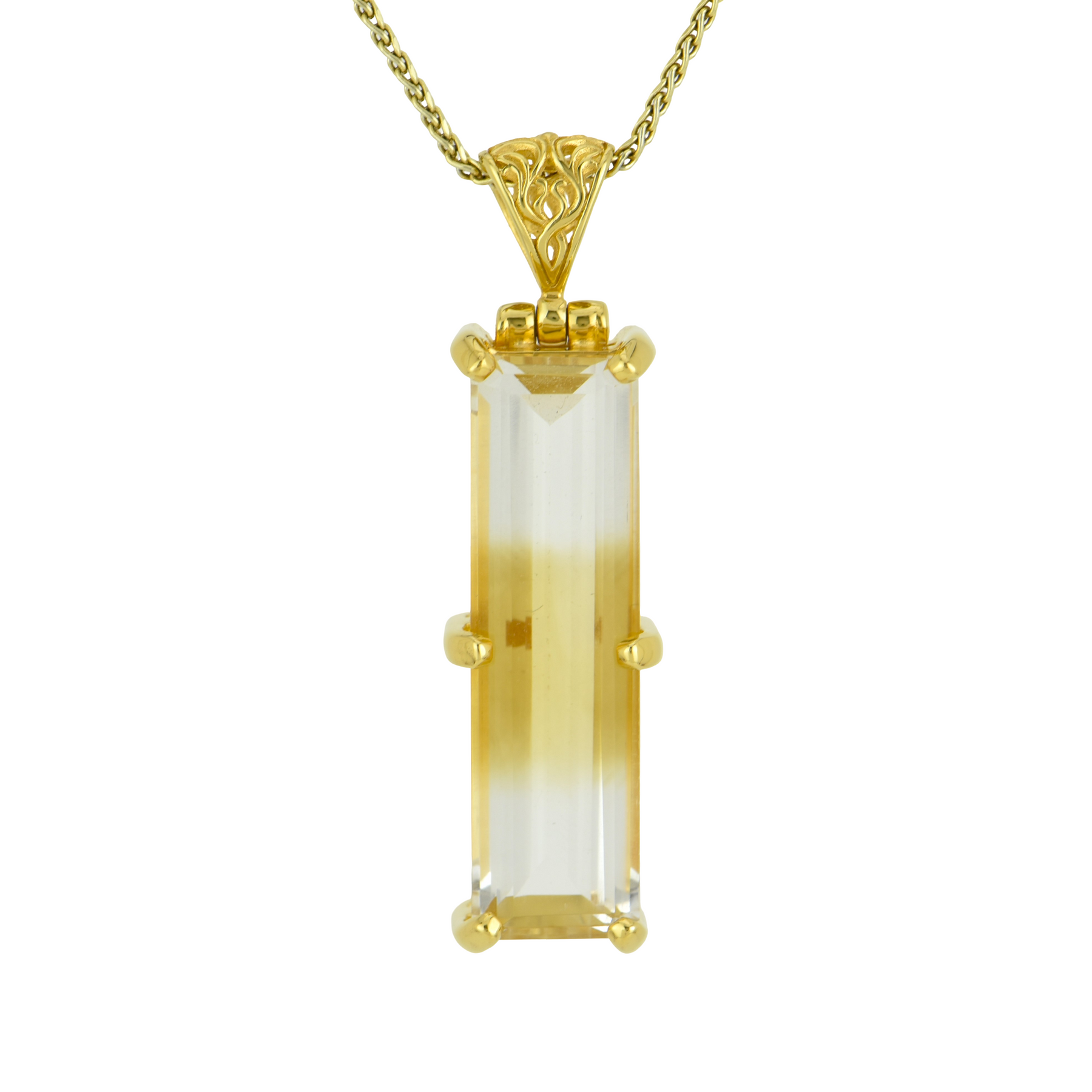 Emerald Cut Citrine Pendant, set in Sterling Silver plated in Yellow Gold