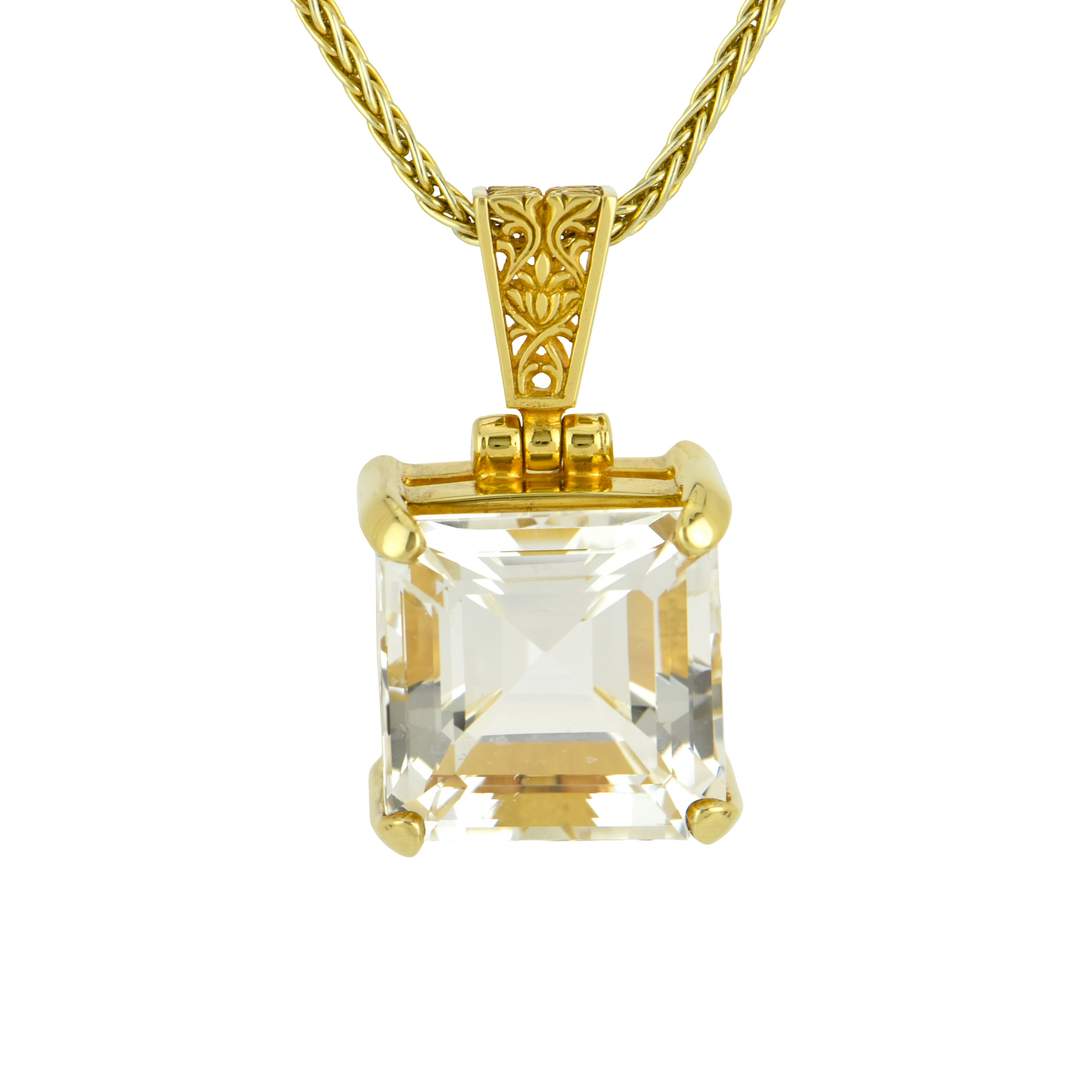 Cushion Cut Citrine Pendant, set in Sterling Silver plated in Yellow Gold