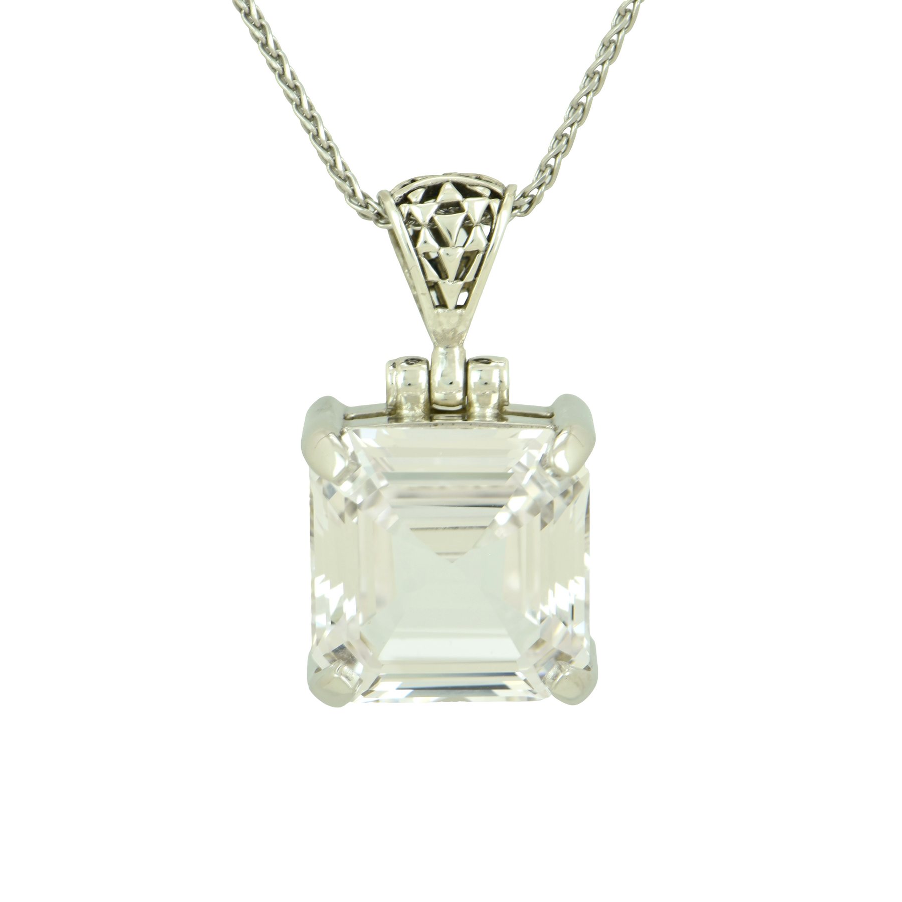 White Sapphire Pendant, set in Sterling Silver plated in White Rhodium
