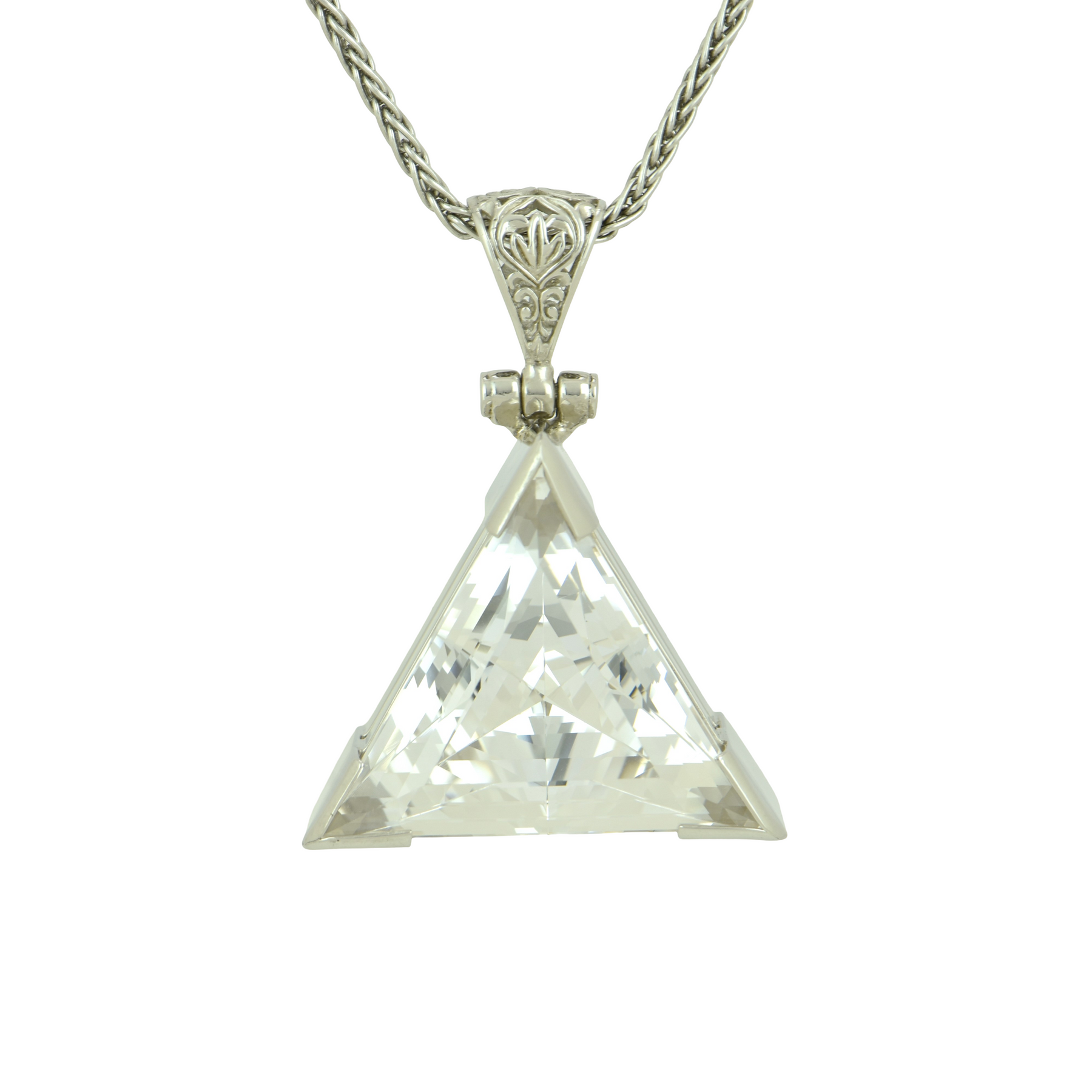 White Sapphire Pendant, set in Sterling Silver plated in White Rhodium