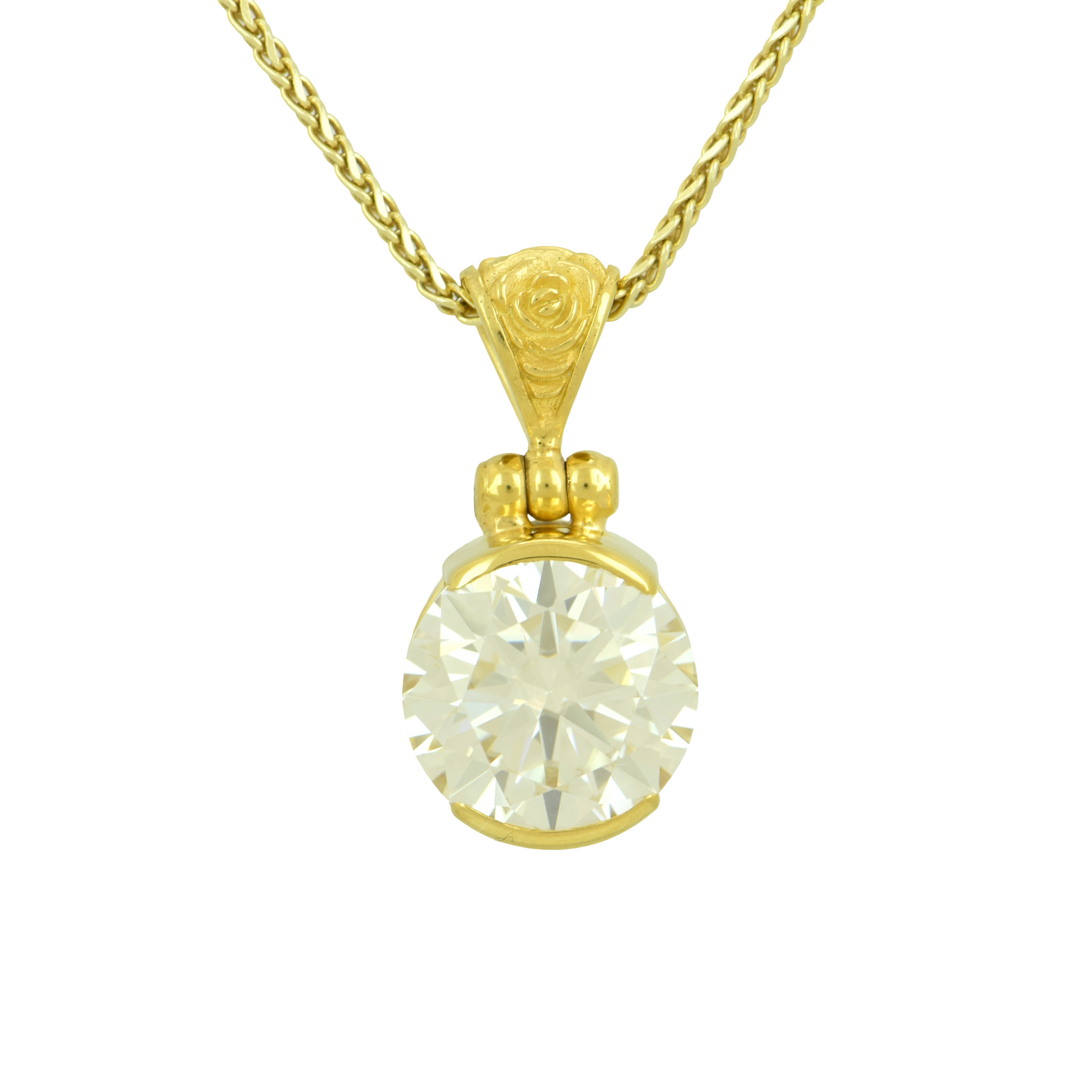 Small round Champagne Moissanite set in Sterling Silver & plated in Yellow Gold