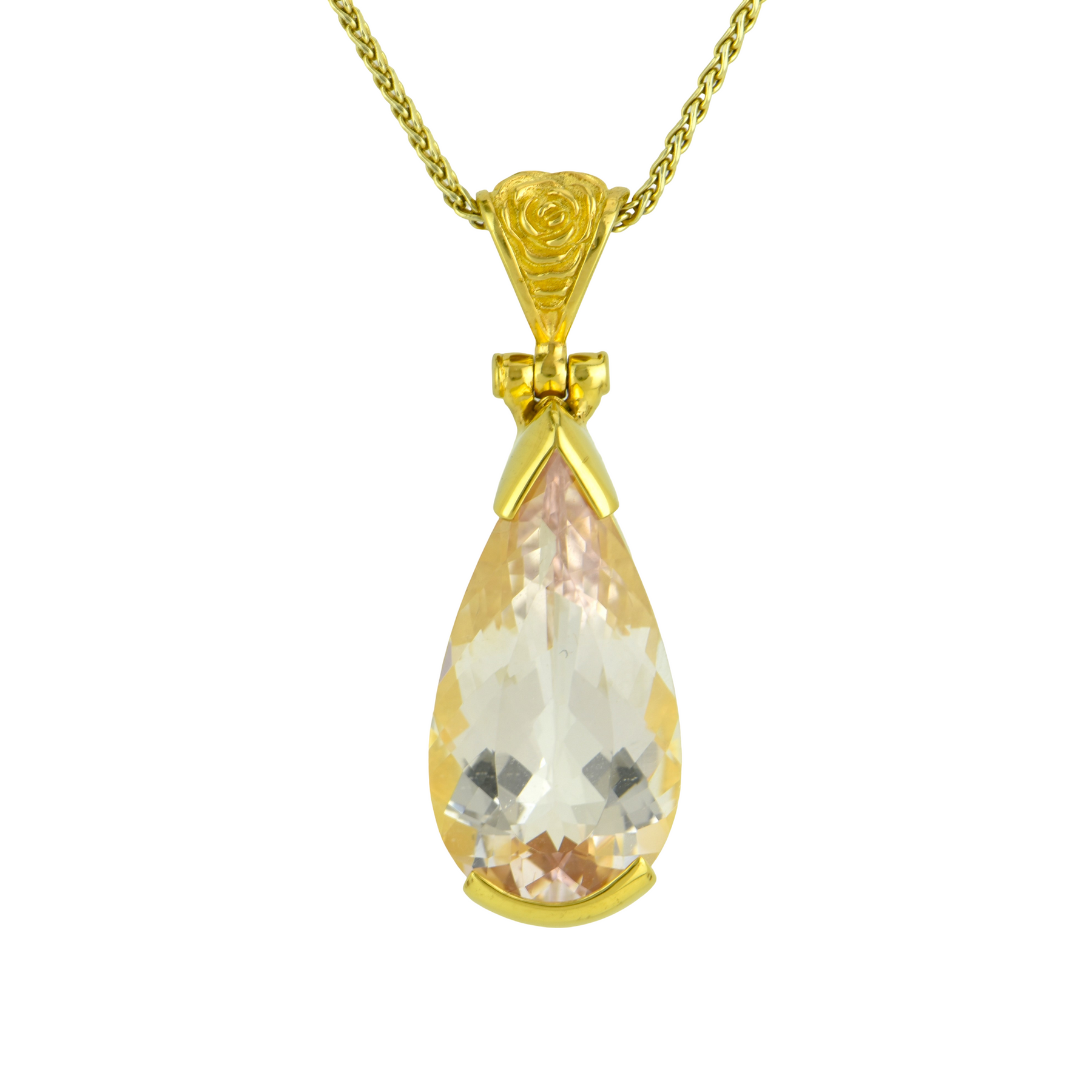 Medium pear shape Morganite set in Sterling Silver plated in Yellow Gold